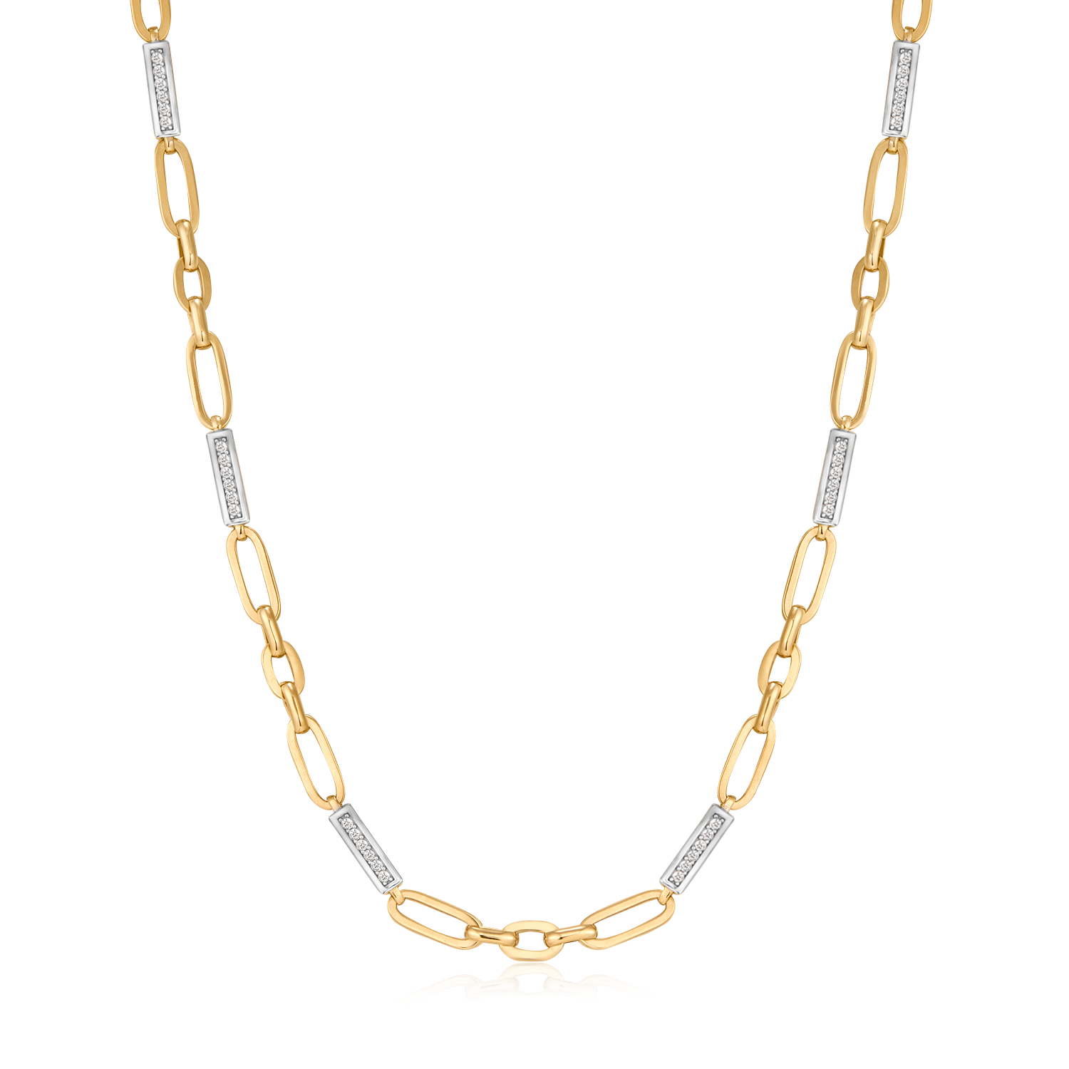 8 kt. guld collier oval led med aflang firkant rør med syntetiske cubic zirconia.