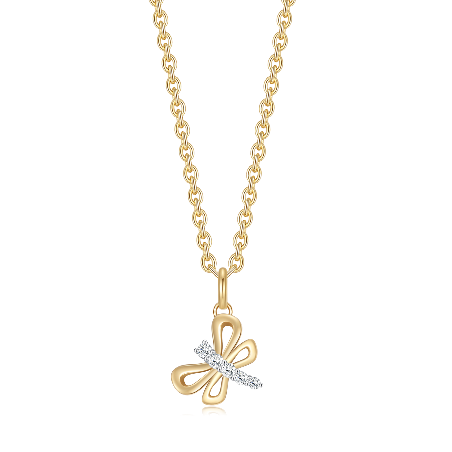 8 kt. guld vedhæng sommerfugl med syntetiske cubic zirconia på kroppen.