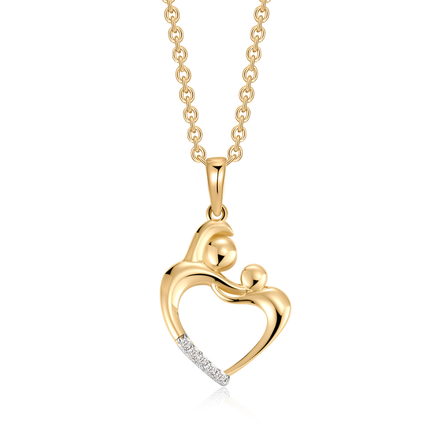 14 kt. guld vedhæng hjerte med mor og barn med syntetiske cubic zirconia. "Mor og barn"