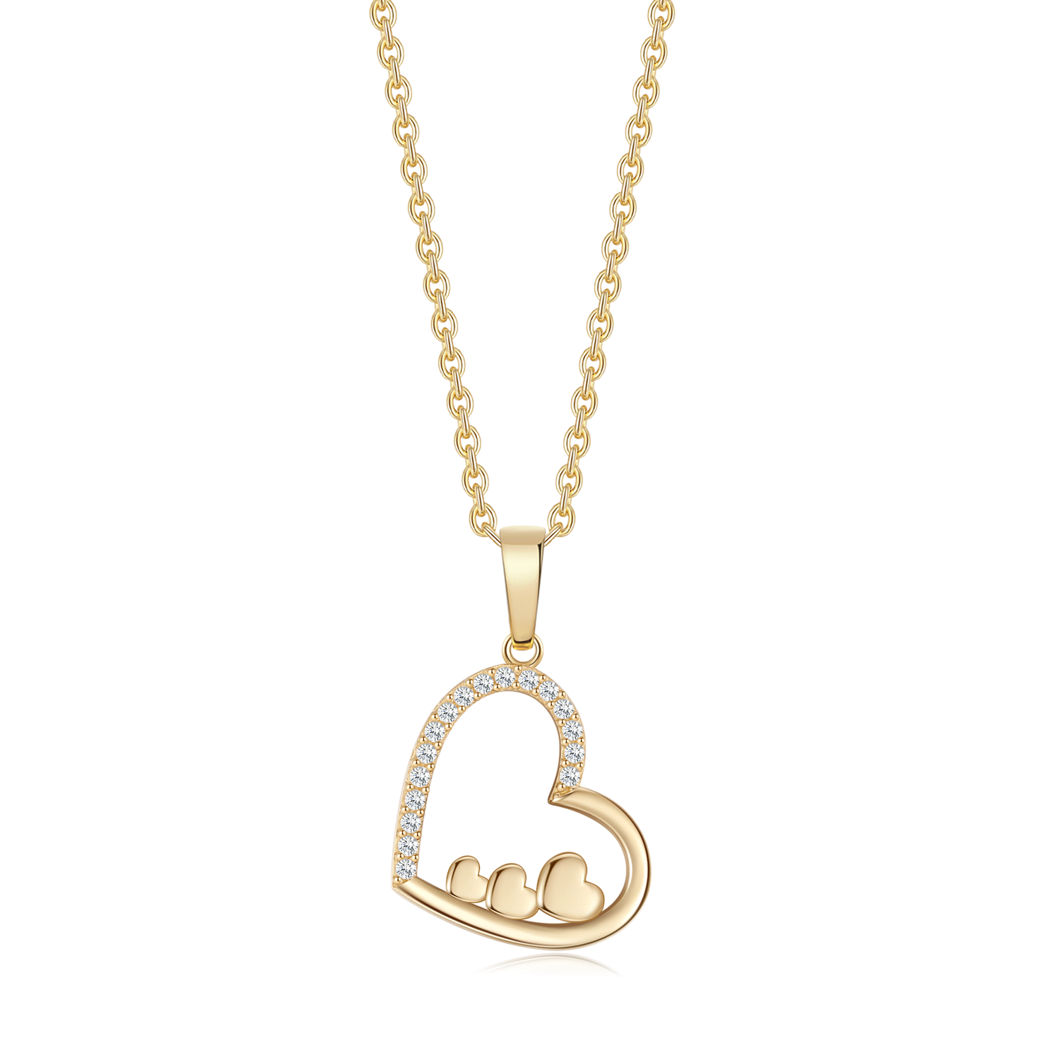 8 kt. guld vedhæng skæv hjert med 3 små hjerter indi med syntetiske cubic zirconia i ene side af kanten