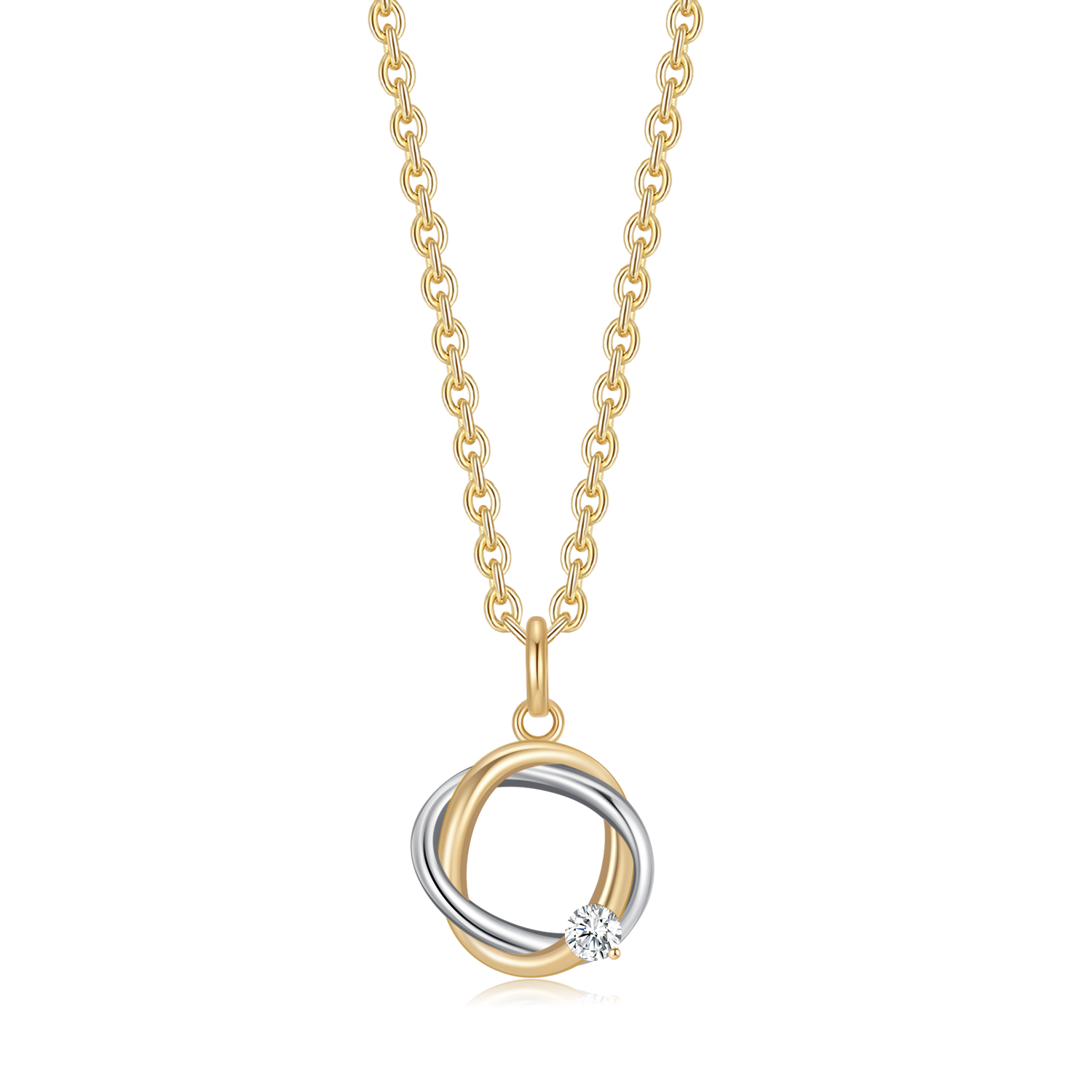 8 kt. guld vedhæng flettet cirkel med hvid og rød guld med en syntetisk cubic zirconia.