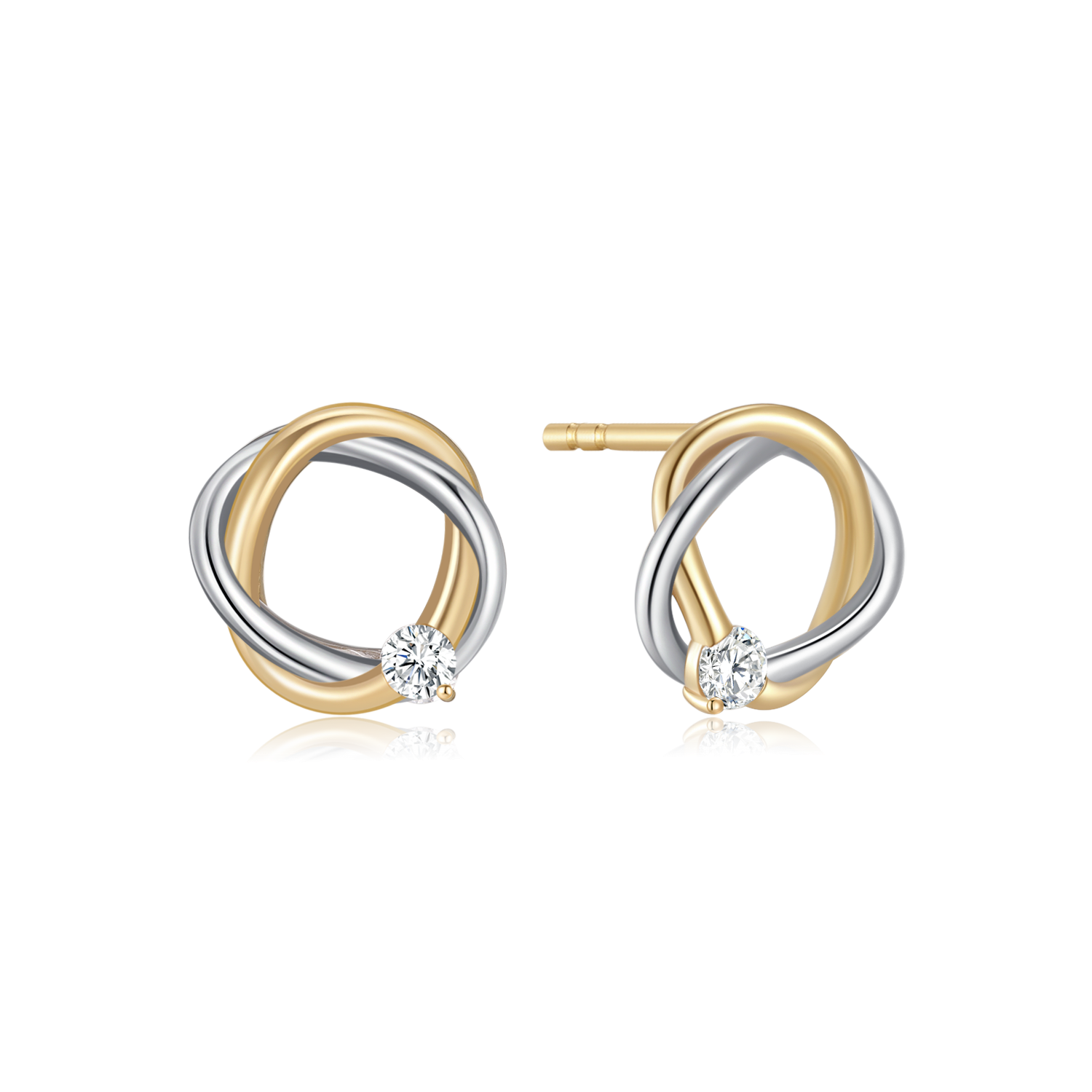 8 kt. guld ørestikker flettet cirkel med hvid og rød guld med en syntetisk cubic zirconia.
