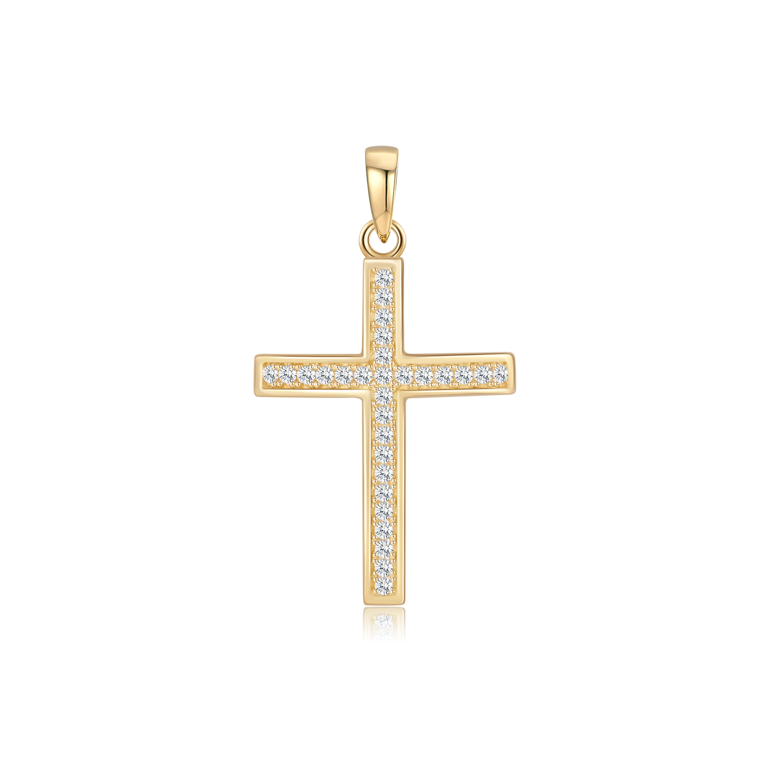 8 kt. guld vedhæng kors med syntetiske cubic zirconia.