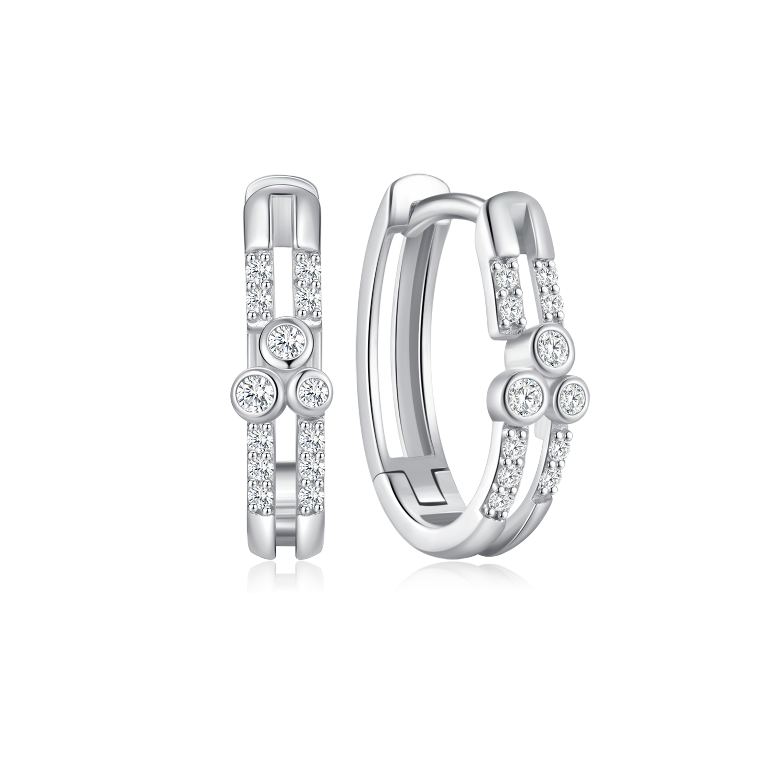 Sølv creoler rhodineret oval med dobbelt skinnen med syntetiske cubic zirconia.