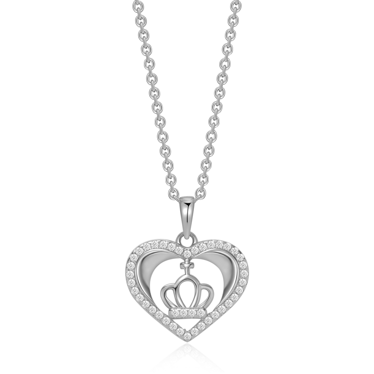 Sølv halskæde rhodineret hjerte med krone og syntetiske cubic zirconia.