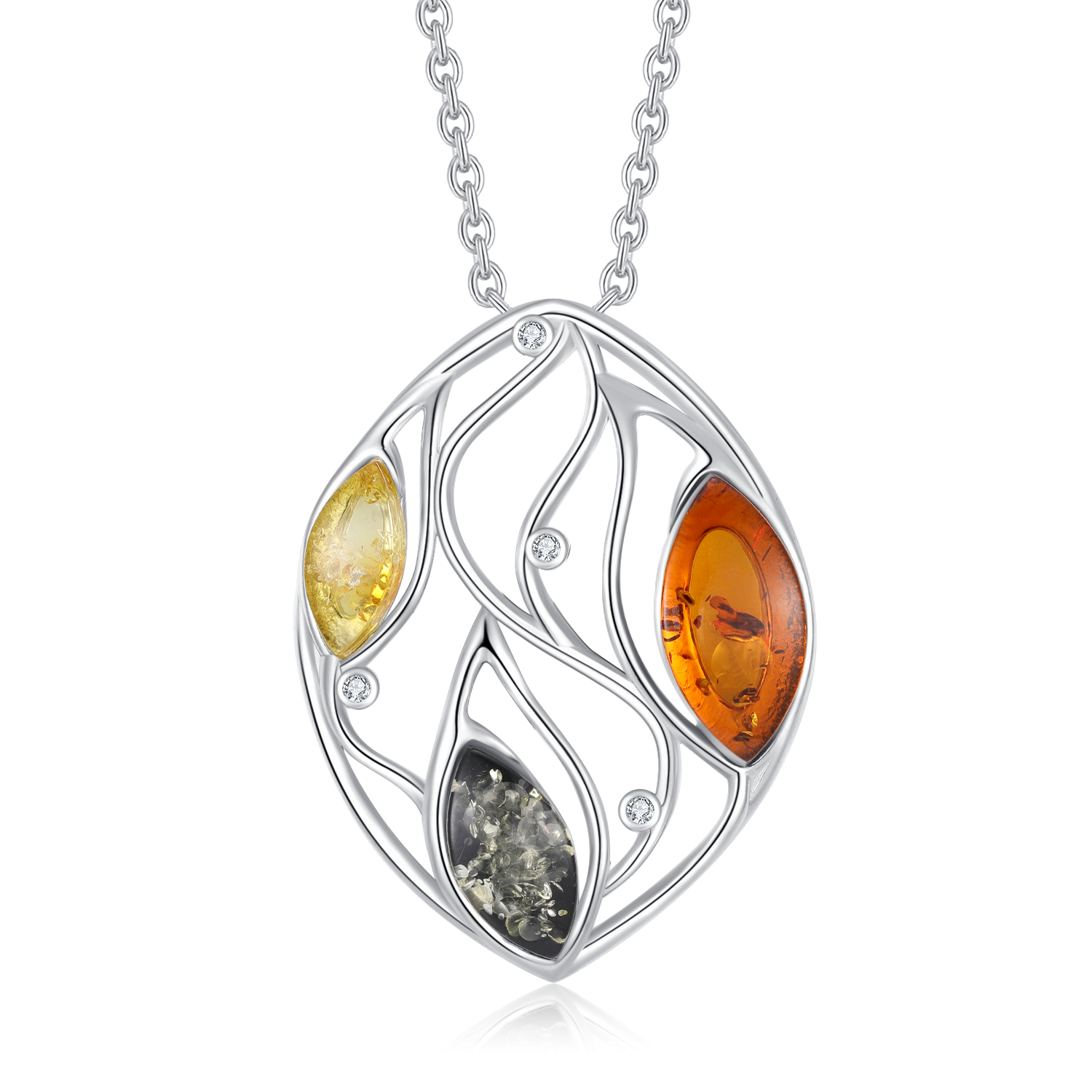 Sølv halskæde rhodineret dråbe med 3 forskellige rav - Lemon, rav, sort agat og syntetiske cubic zirconia.