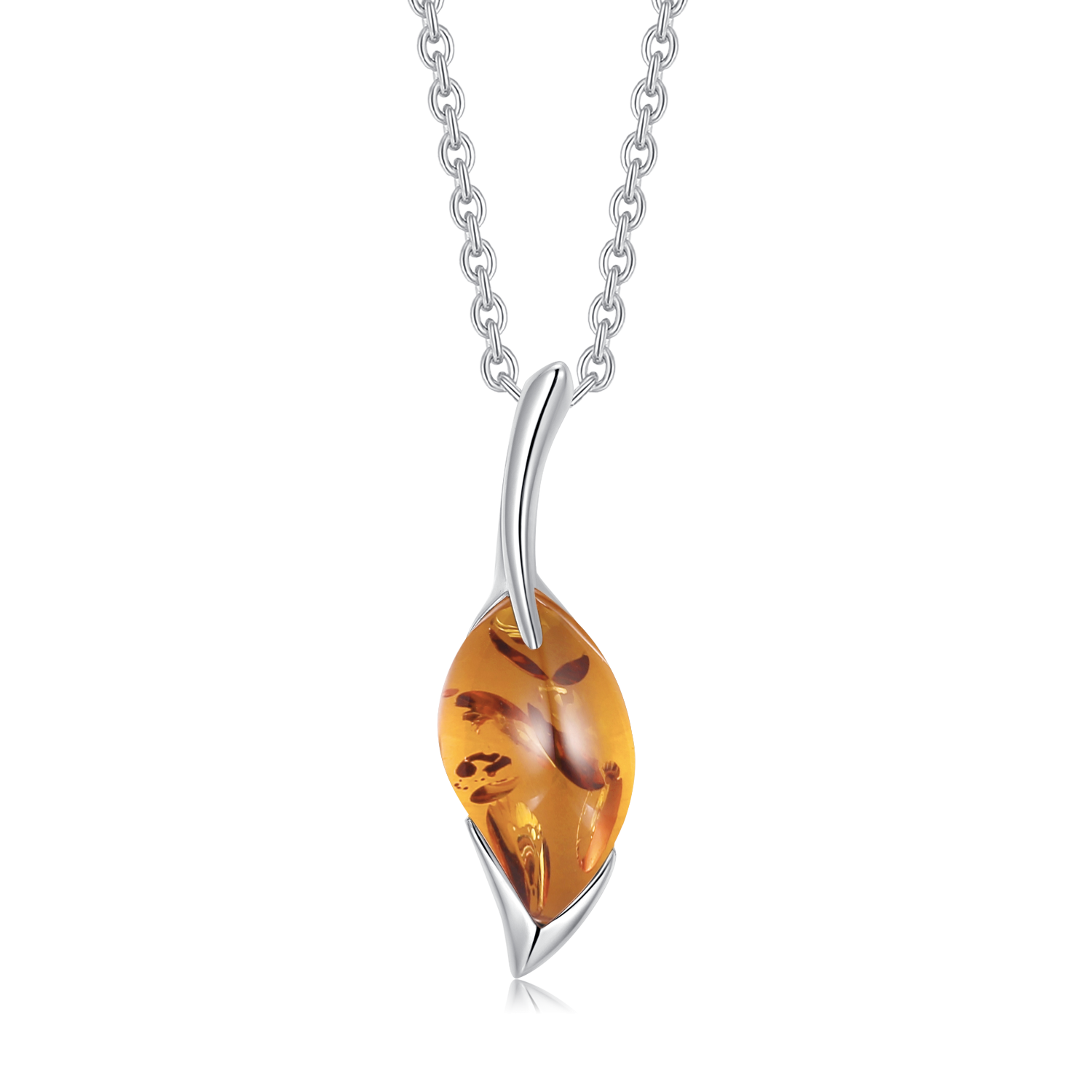 Sølv halskæde rhodineret dråbe med rav.