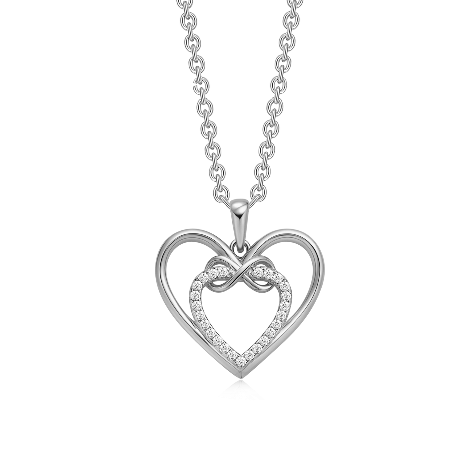 Sølv halskæde rhodineret dobbelt hjerter med syntetiske cubic zirconia og evighedstegn.