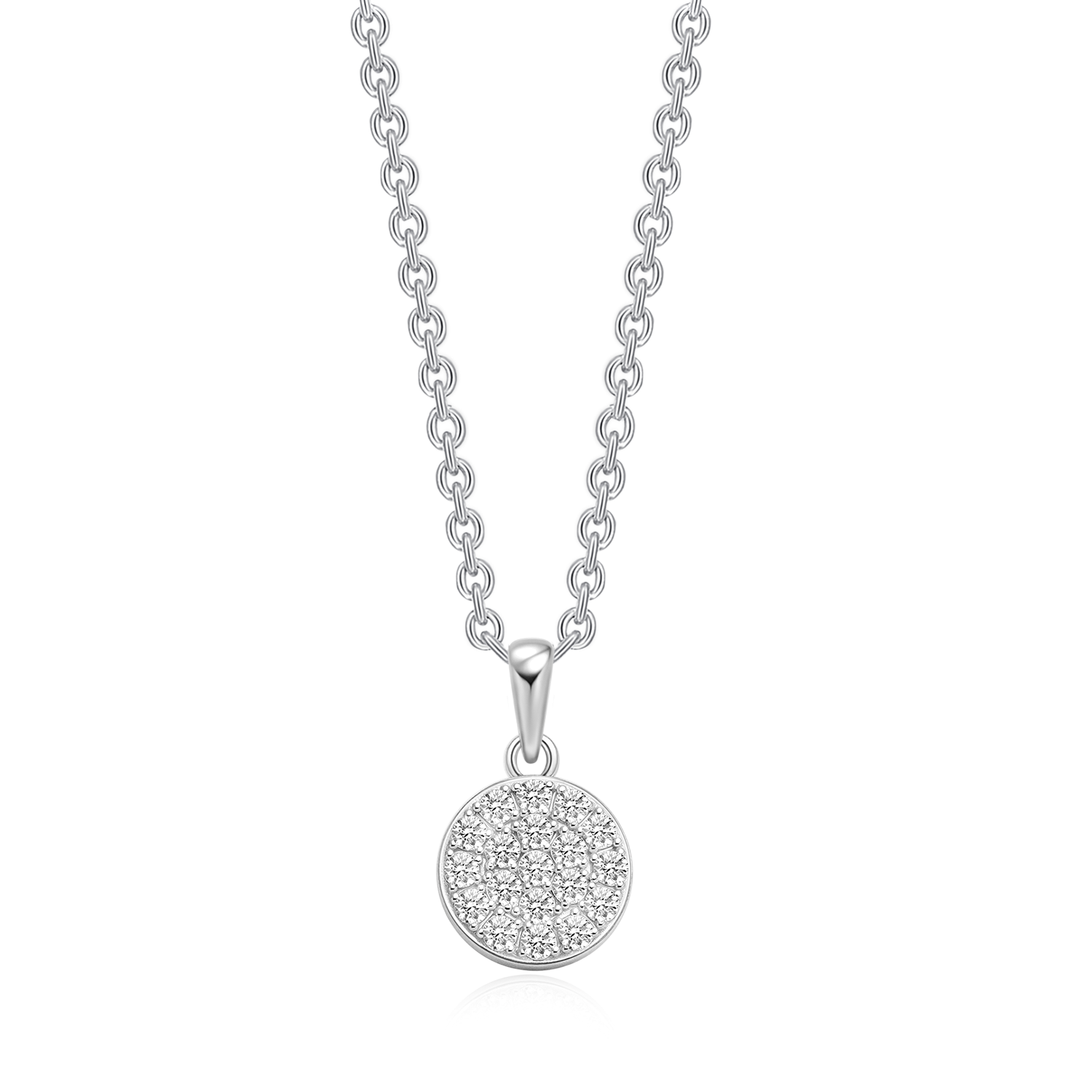 Sølv halskæde rhodineret cirkel fyldt med syntetiske cubic zirconia.