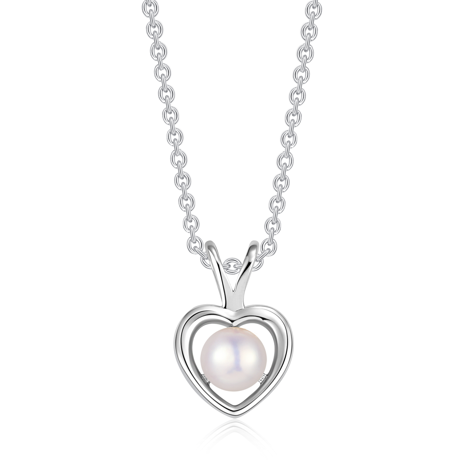 Sølv halskæde rhodineret hjerte med ferskvandsperle. .