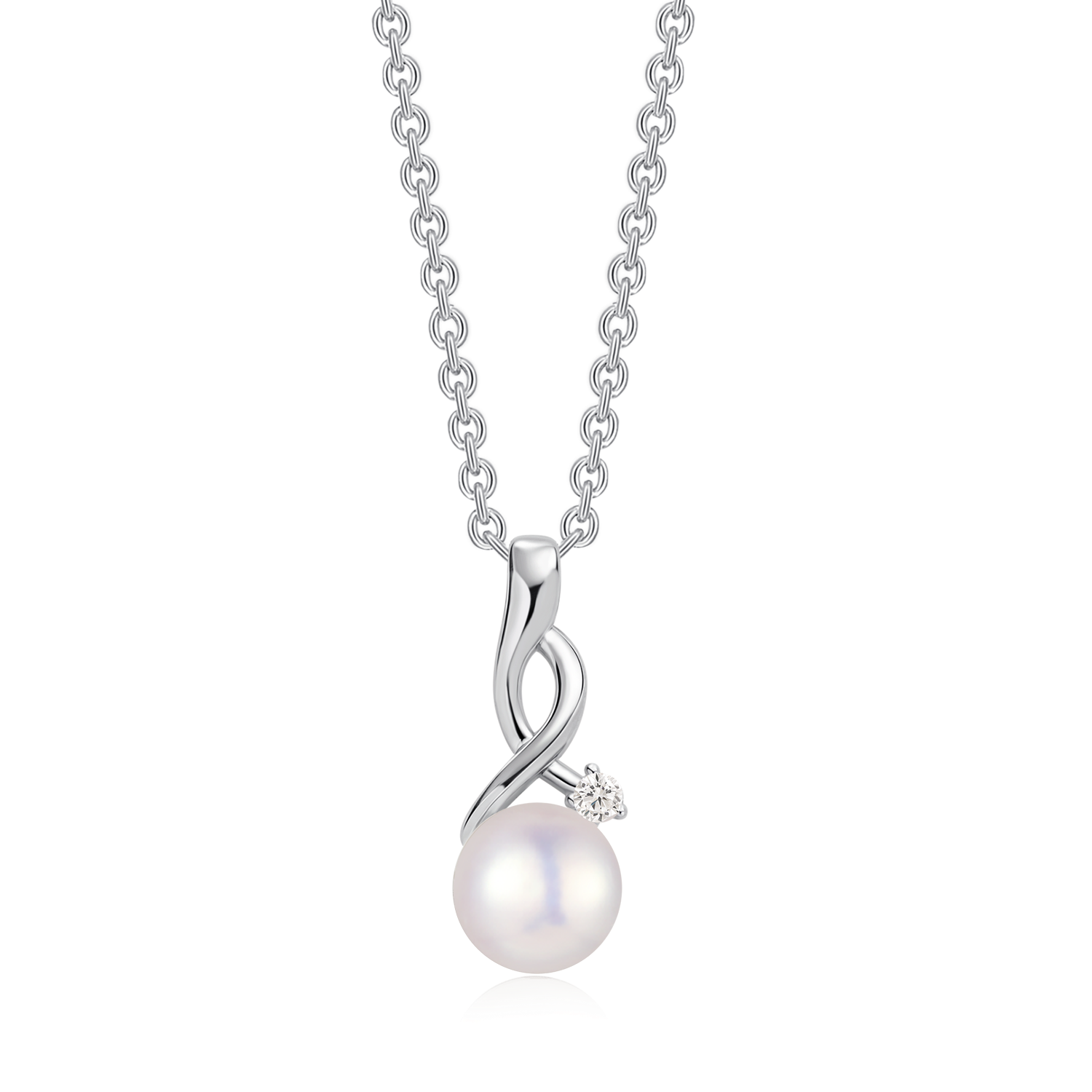 Sølv halskæde rhodineret evighedstegn med syntetiske cubic zircornia og ferskvandsperle.