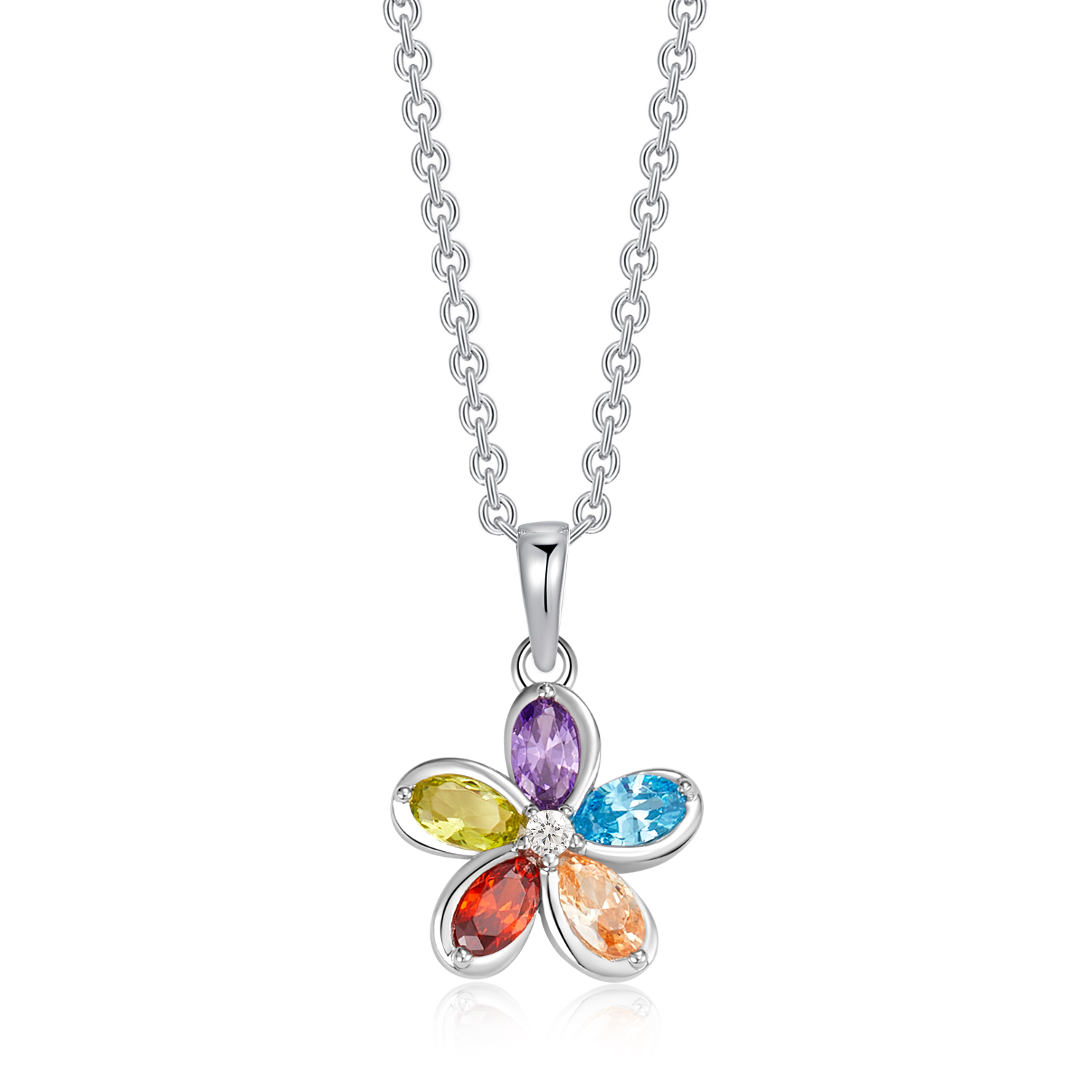 Sølv halskæde rhodineret blomst med ametyst, blå topas, Citrin, granat, peridot og syntetisk cubic zirconia.