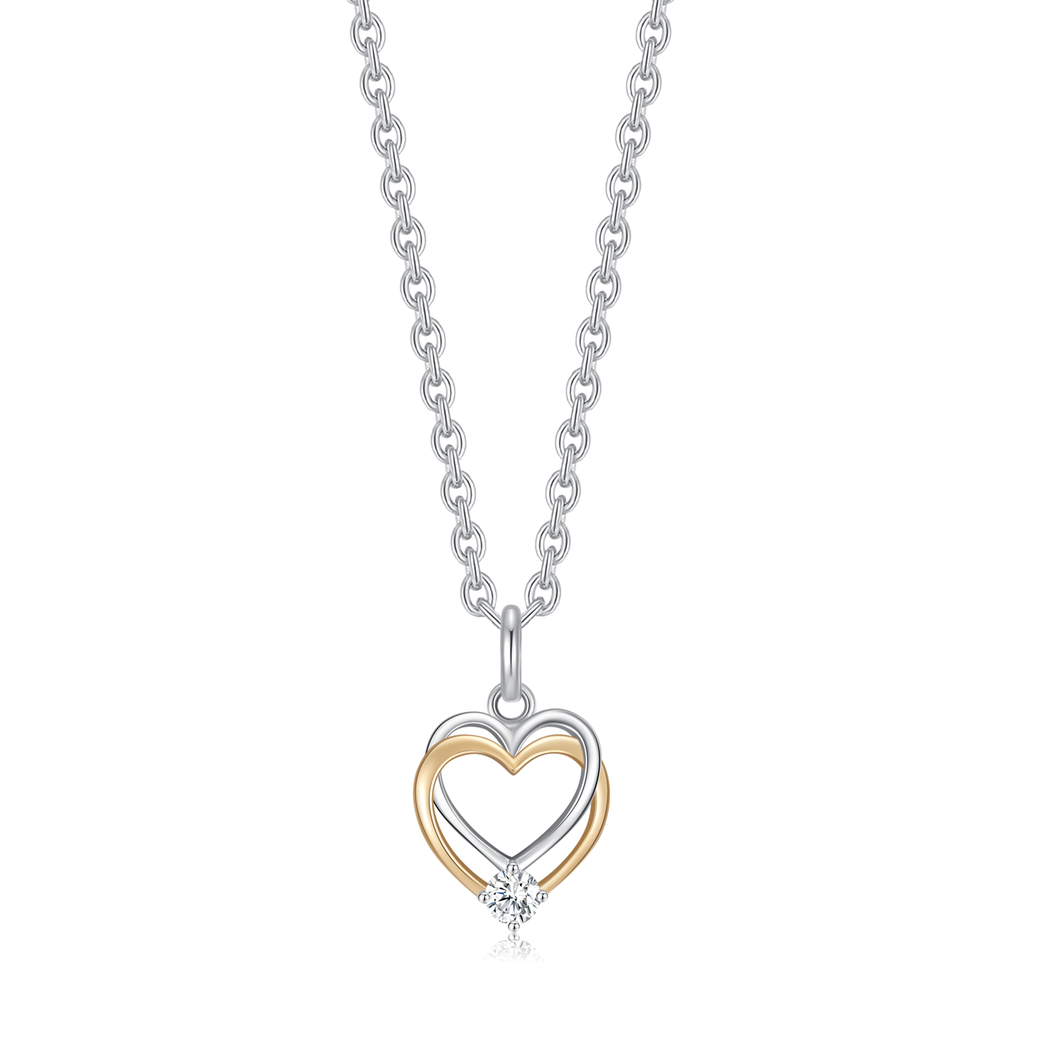 Sølv vedhæng rhodineret/forgyldt hjerte med en syntetisk cubic zirconia.