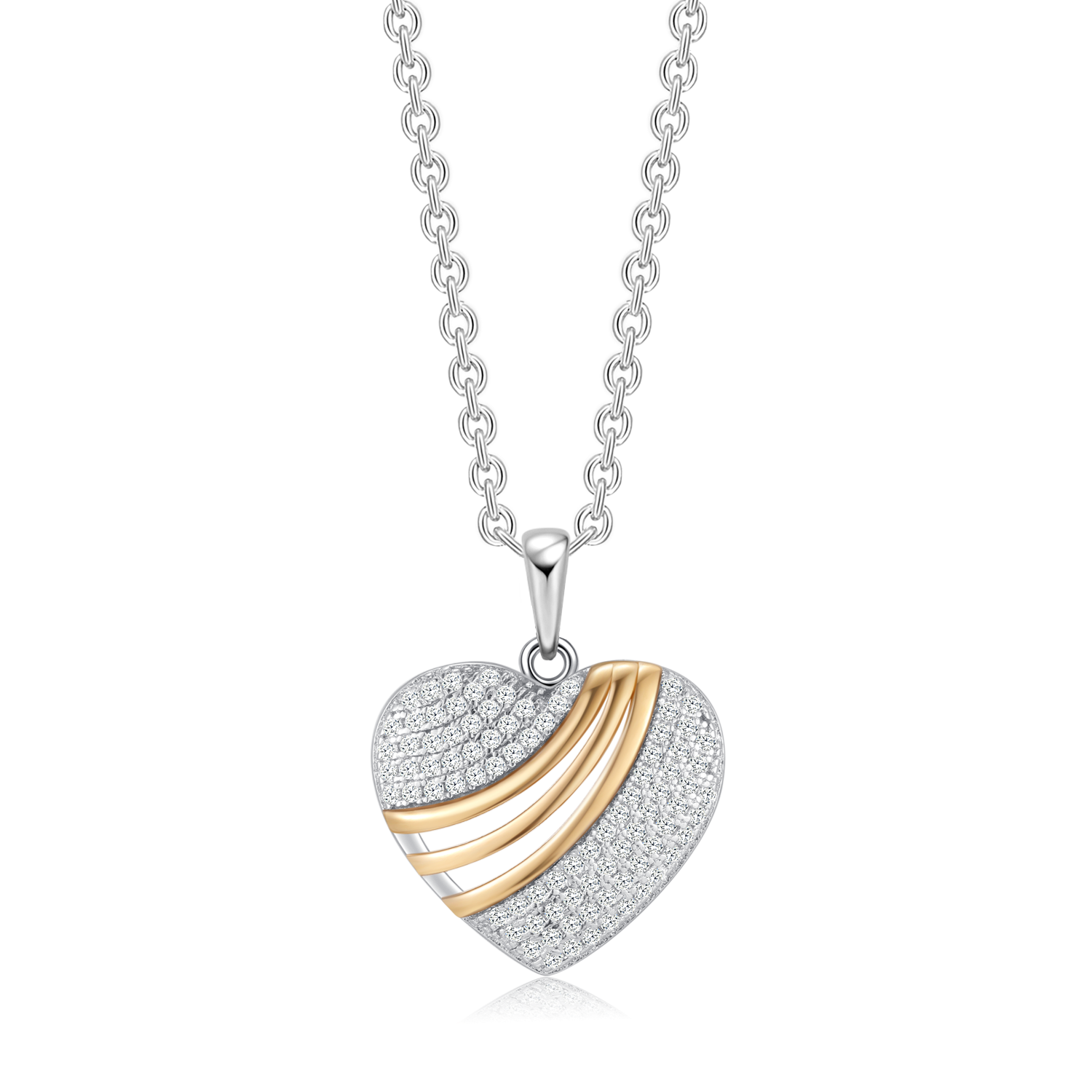 Sølv halskæde rhodineret hjerte med 3 forgyldte streger og syntetiske cubic zirconia.