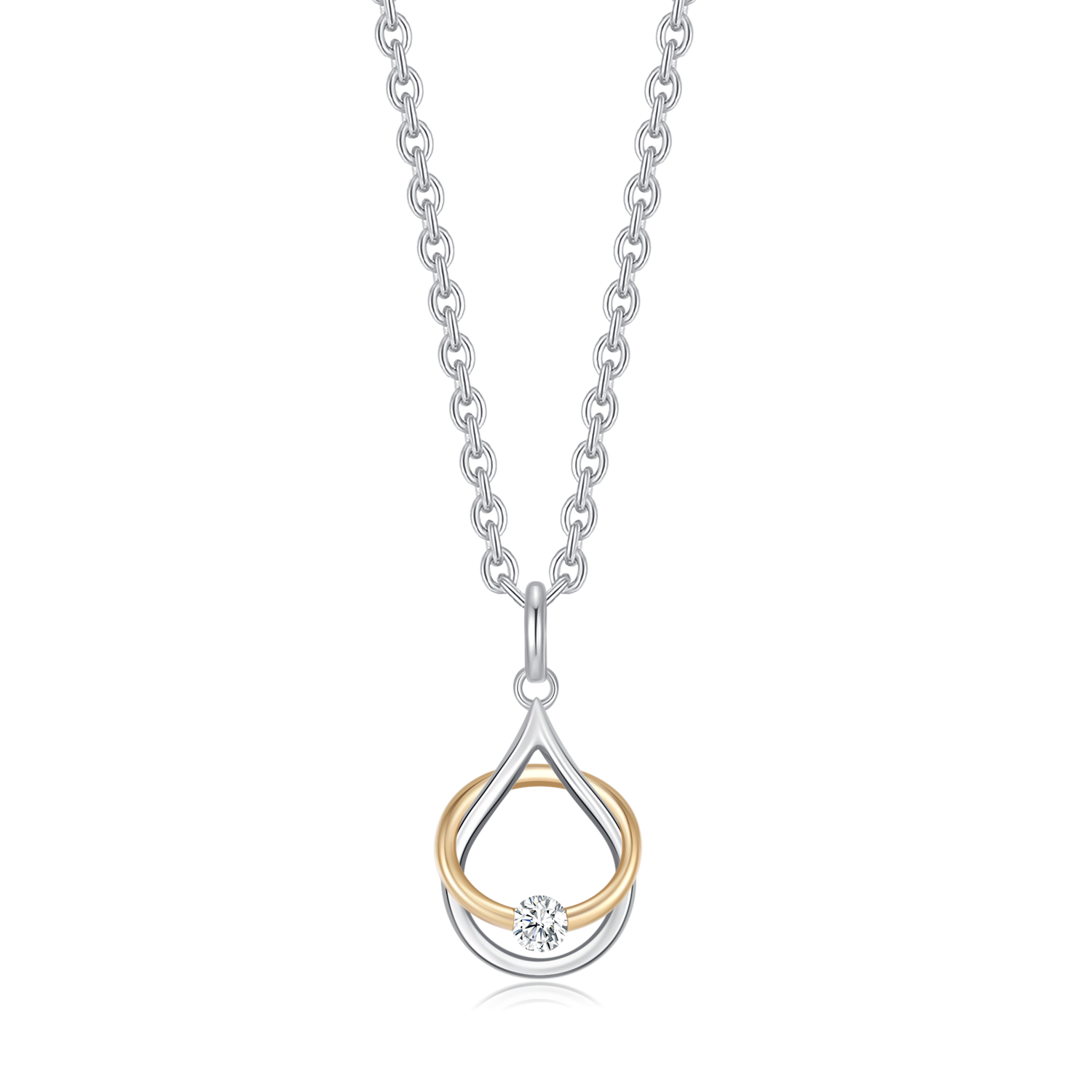 Sølv halskæde rhodineret flettet dråbe med en syntetisk cubic zirconia.