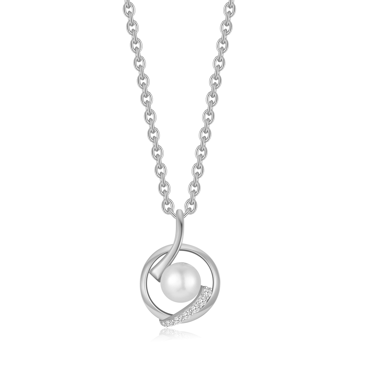 Sølv halskæde rhodineret cirkel med ferskvandsperle og syntetiske cubic zirconia.