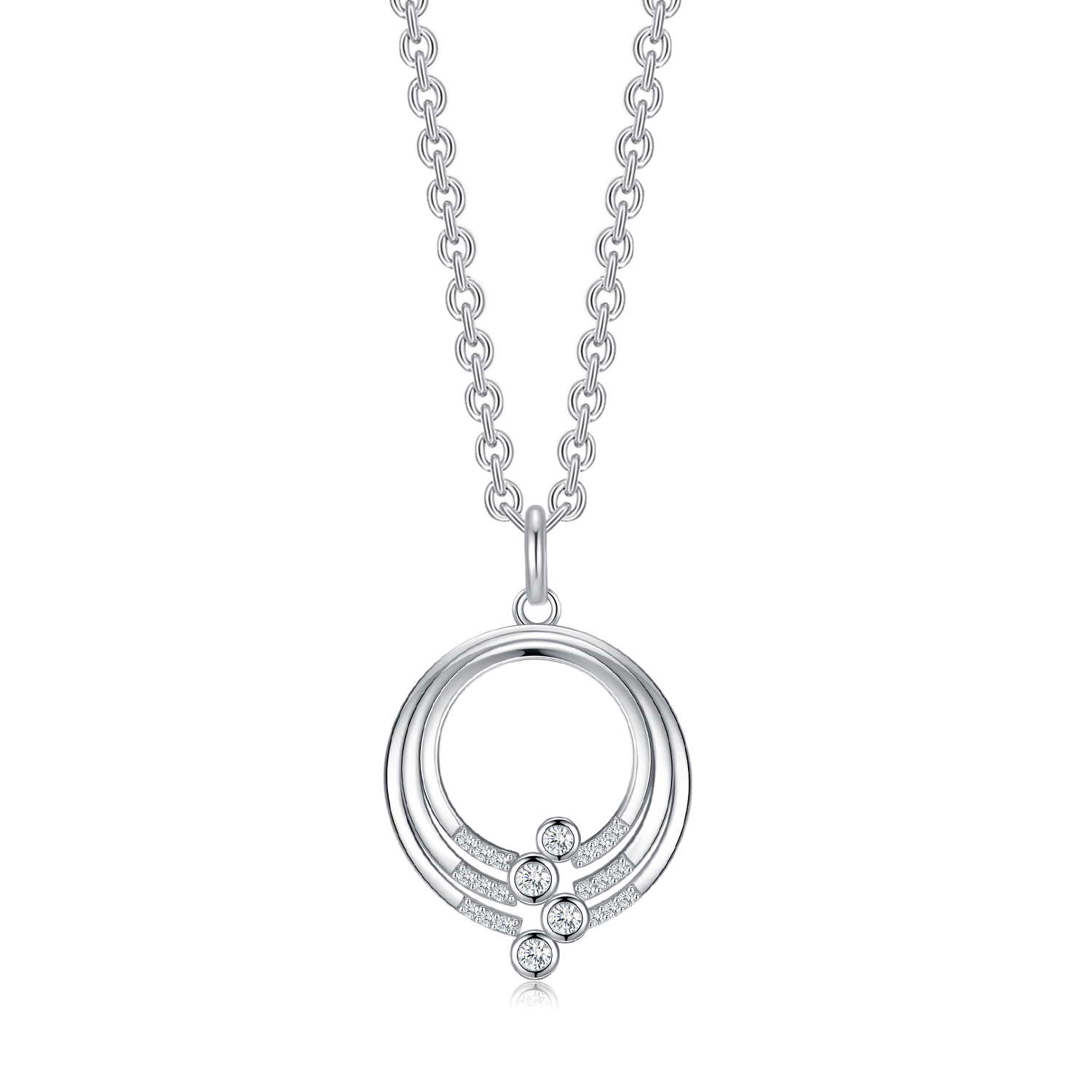 Sølv halskæde rhodineret 3 cirkel med syntetiske cubic zirconia.