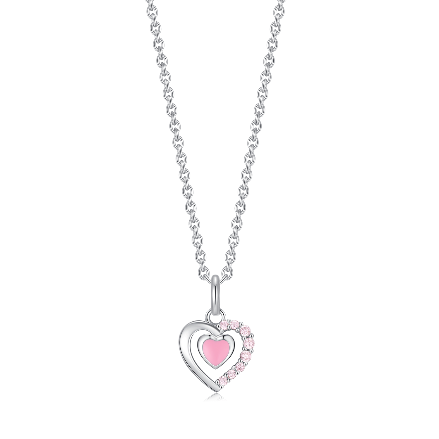 Sølv halskæde rhodineret hjerte med lyserød blyfri emalje hjerte med syntetiske cubic zirconia.