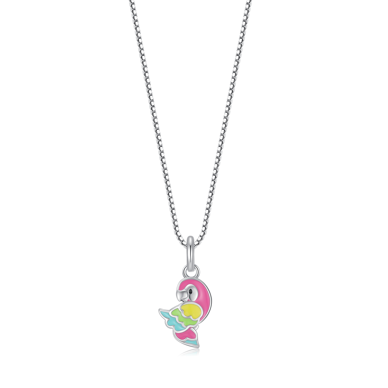 Sølv halskæde rhodineret papegøjer med multi blyfri emalje.