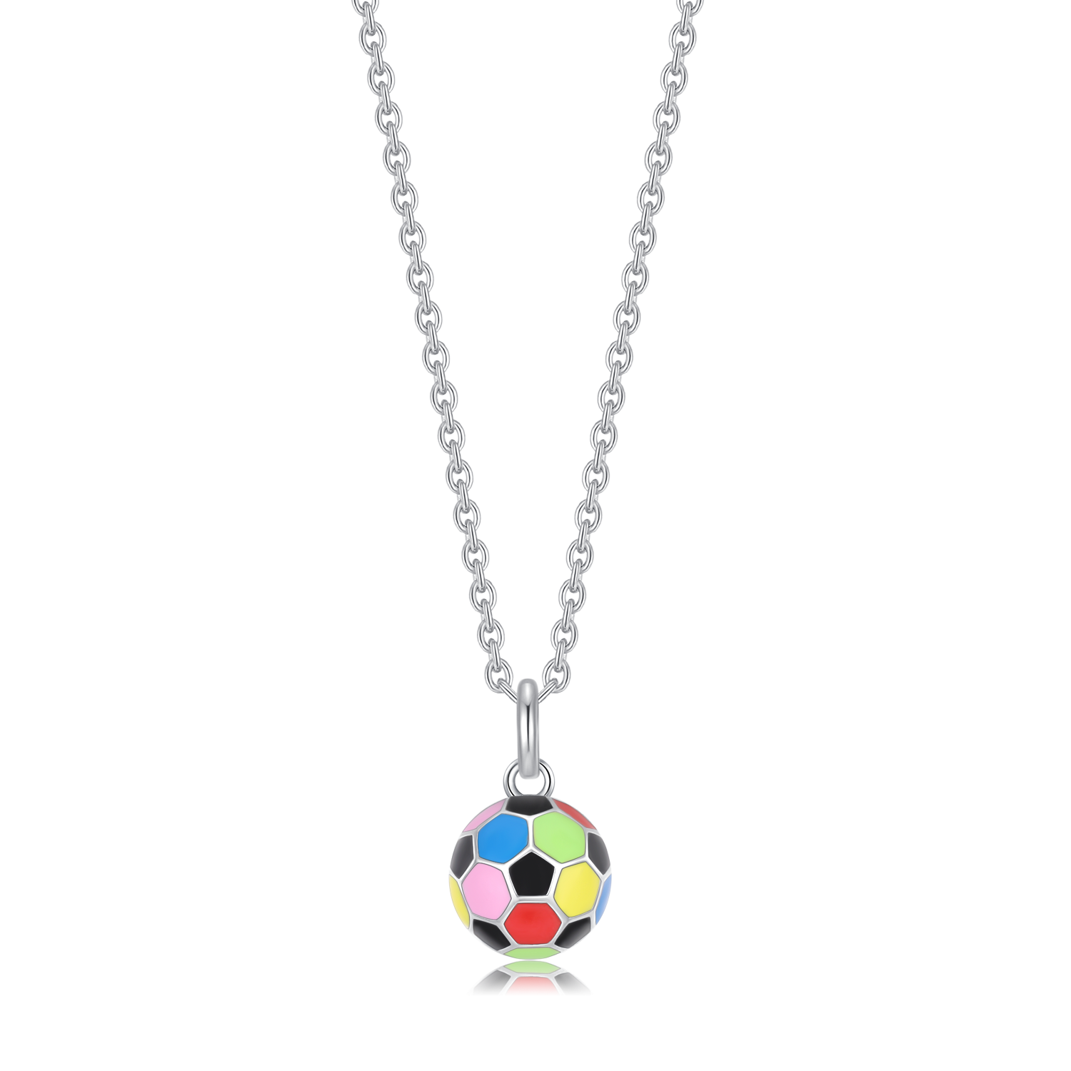 Sølv halskæde rhodineret fodbold med multi blyfri emalje.