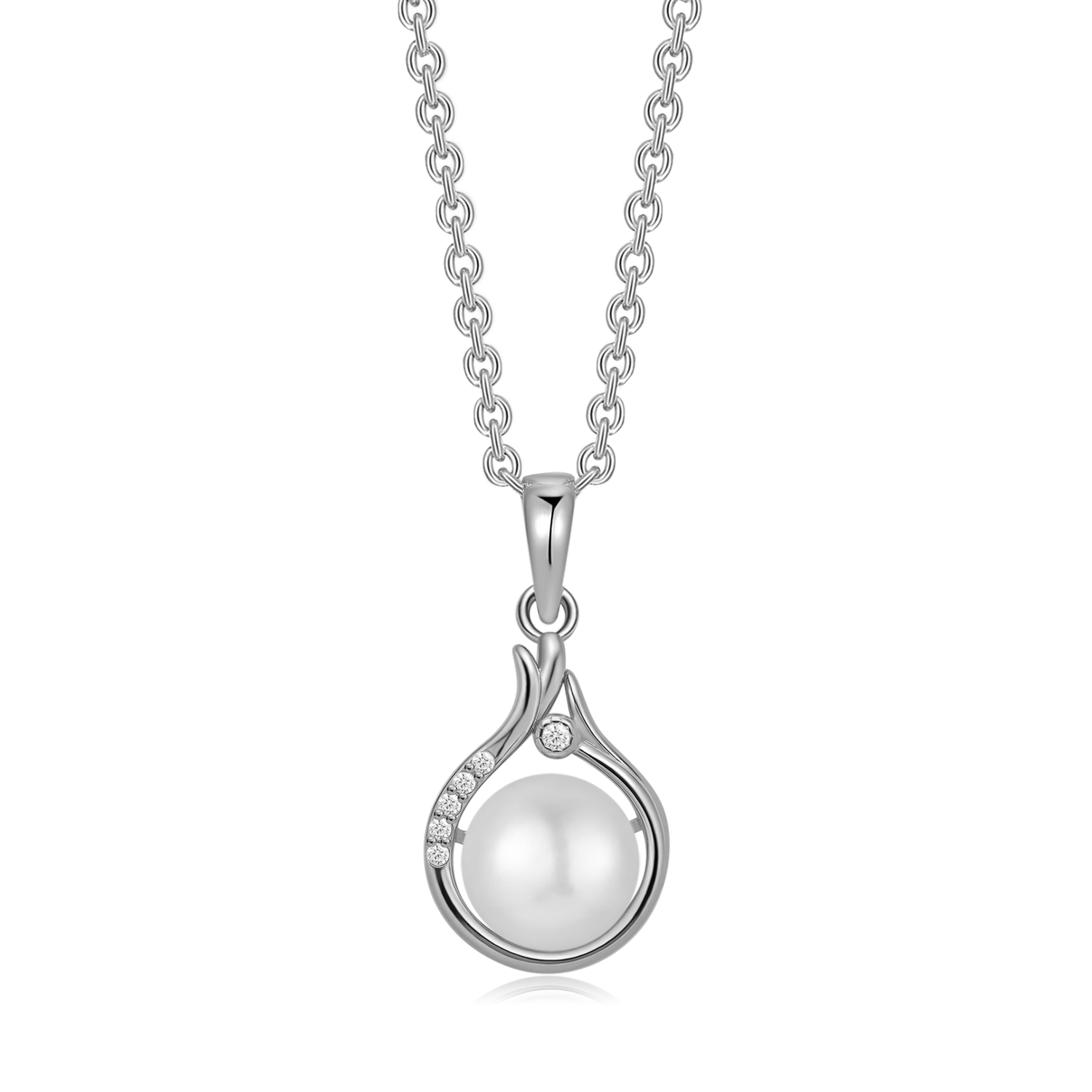 Sølv halskæde rhodineret dråbe med syntetiske cubic zirconia og ferskvandsperle.