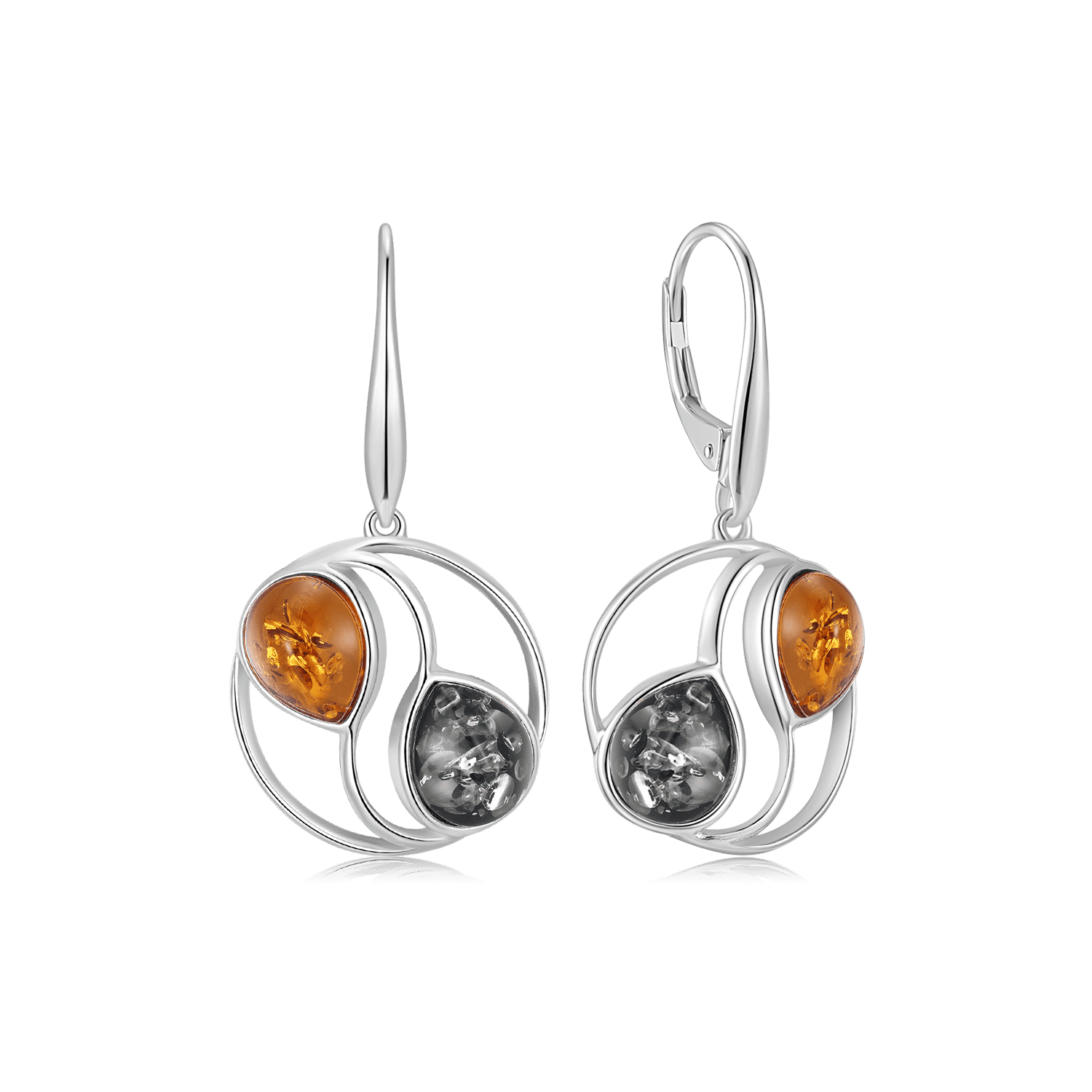 Sølv ørehænger rhodineret cirkel med 2 forskellige rav-