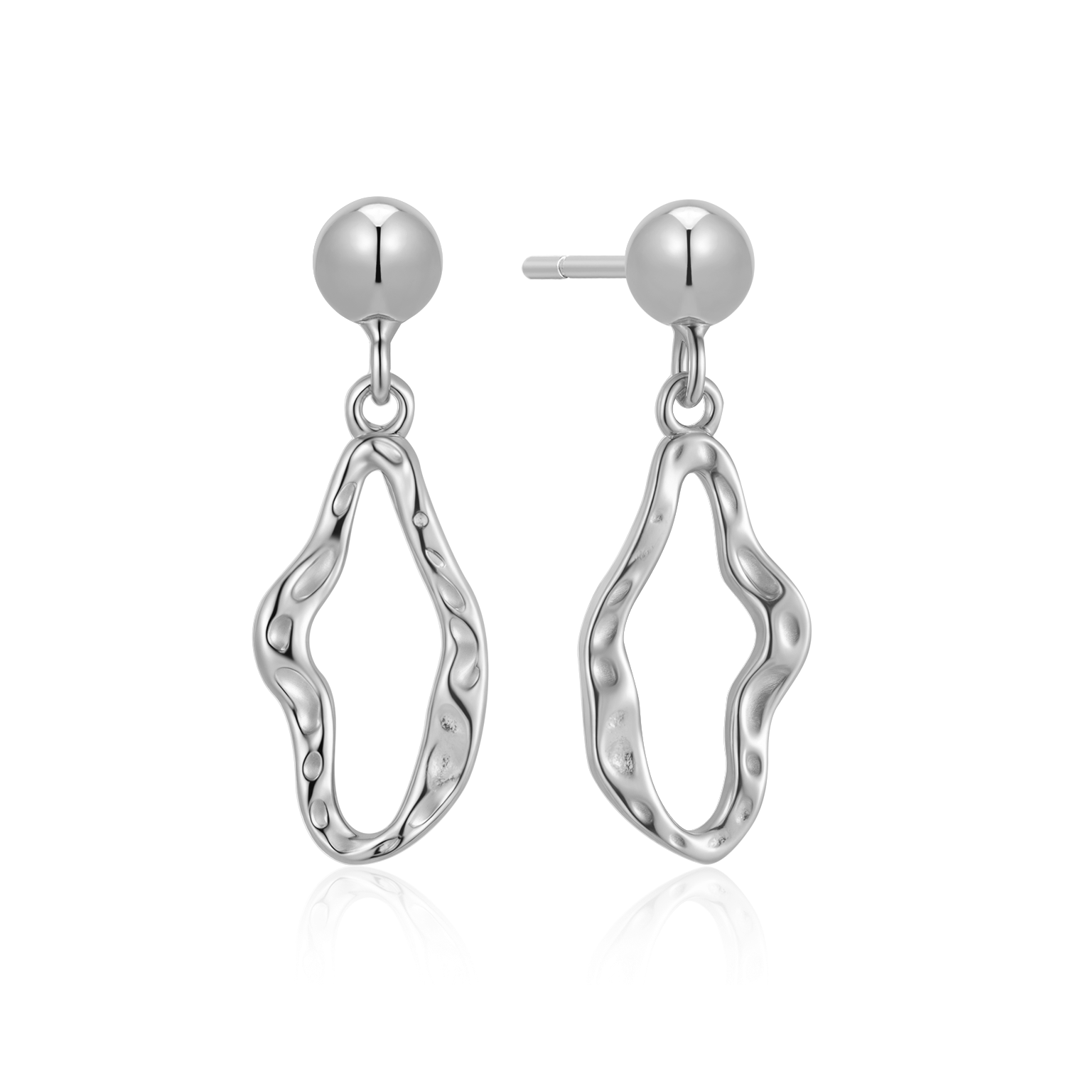 Sølv ørehænger rhodineret kugle med skæv oval som hænger.
