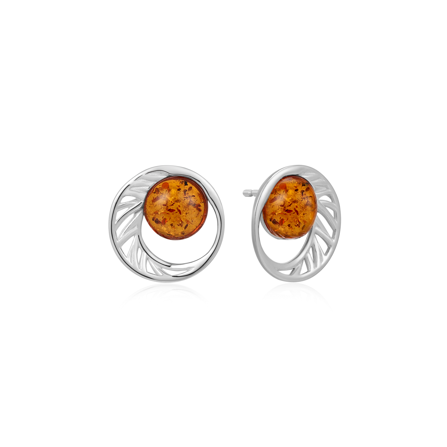Sølv ørestikker rhodineret cirkel med mønstre og rav