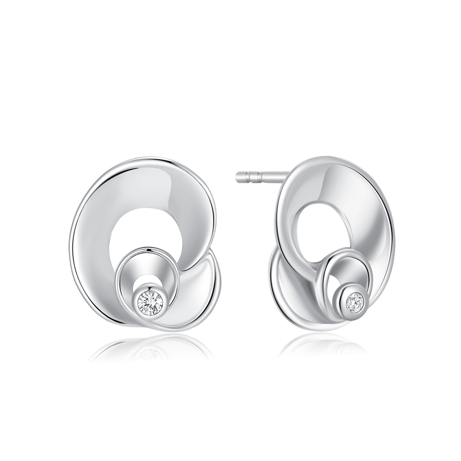 Sølv ørestikker rhodineret dobbelt oval med en syntetisk cubic zirconia.