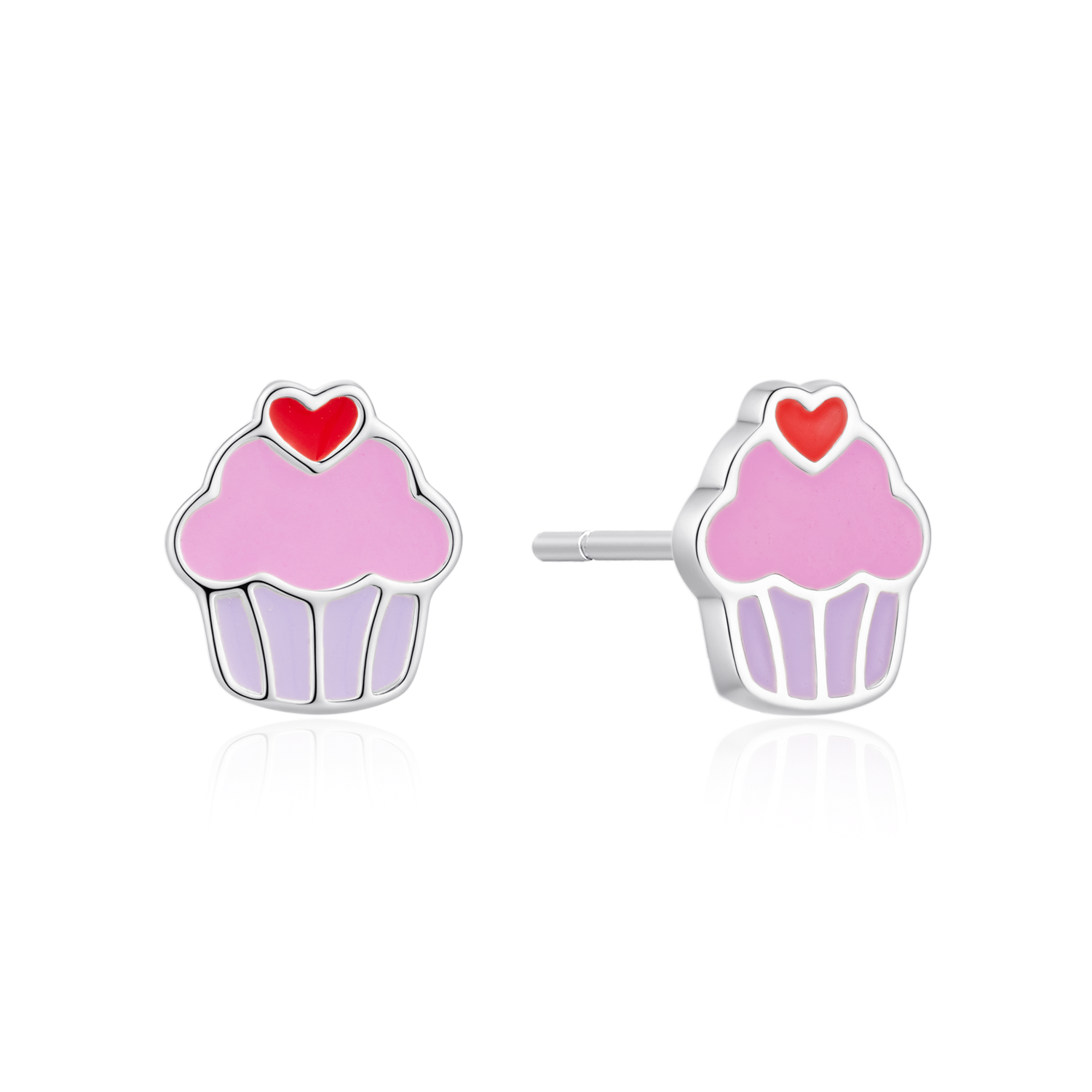Sølv ørestikker cupcake i lyserød, pink, og rød hjerte med blyfri emalje på top.
