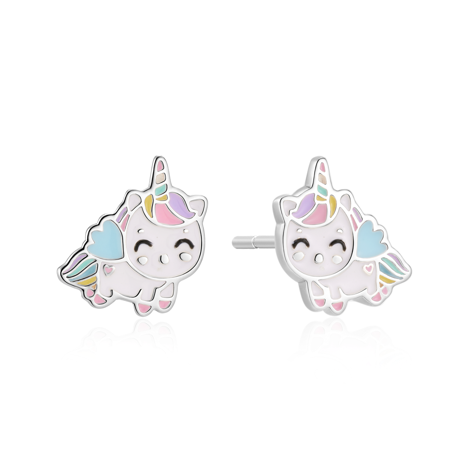 Sølv ørestikker enhjørning med multifarvet blyfri emalje.