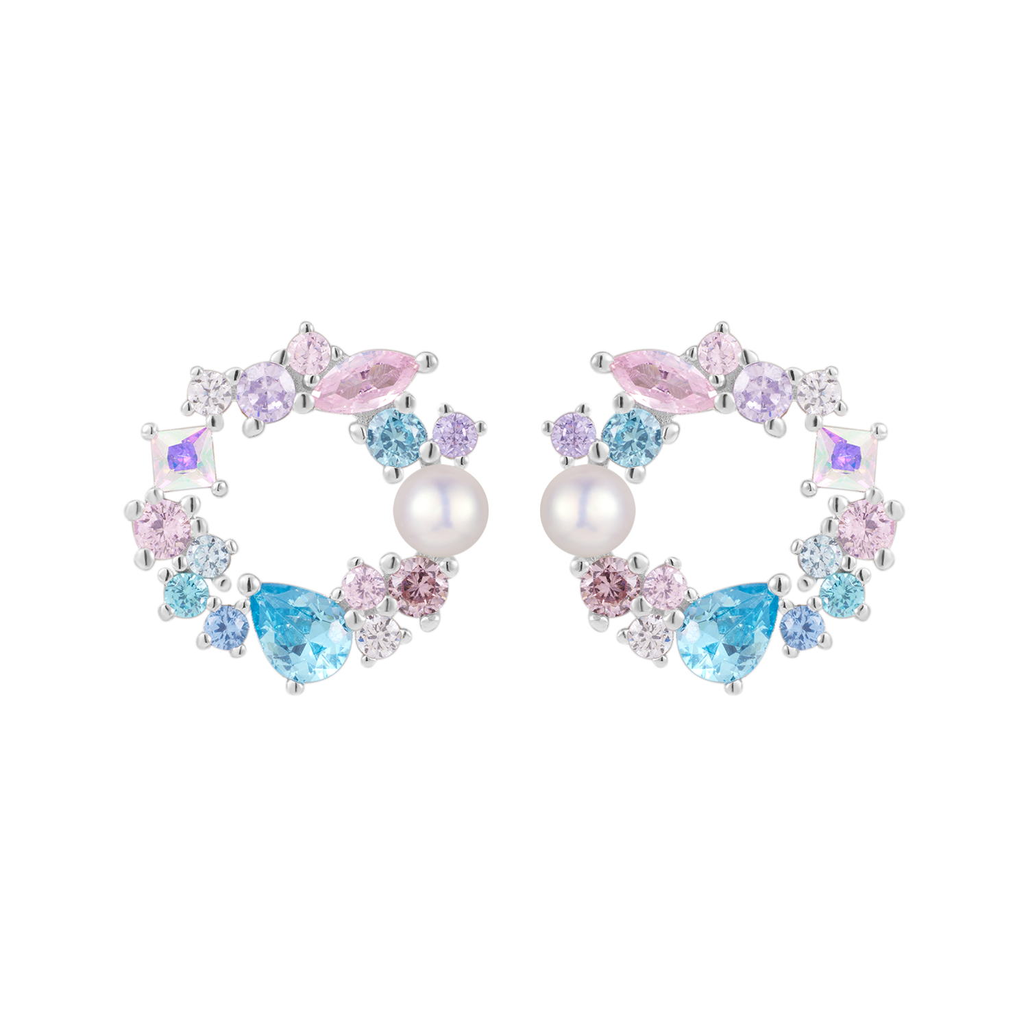 Sølv ørestikker rhodineret cirkel med multi syntetiske cubic zirconia farver sten.
