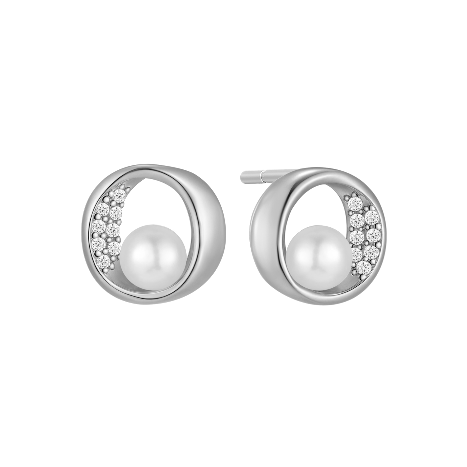 Sølv ørestikker rhodineret oval med syntetiske cubic zirconia ferskvandsperle.