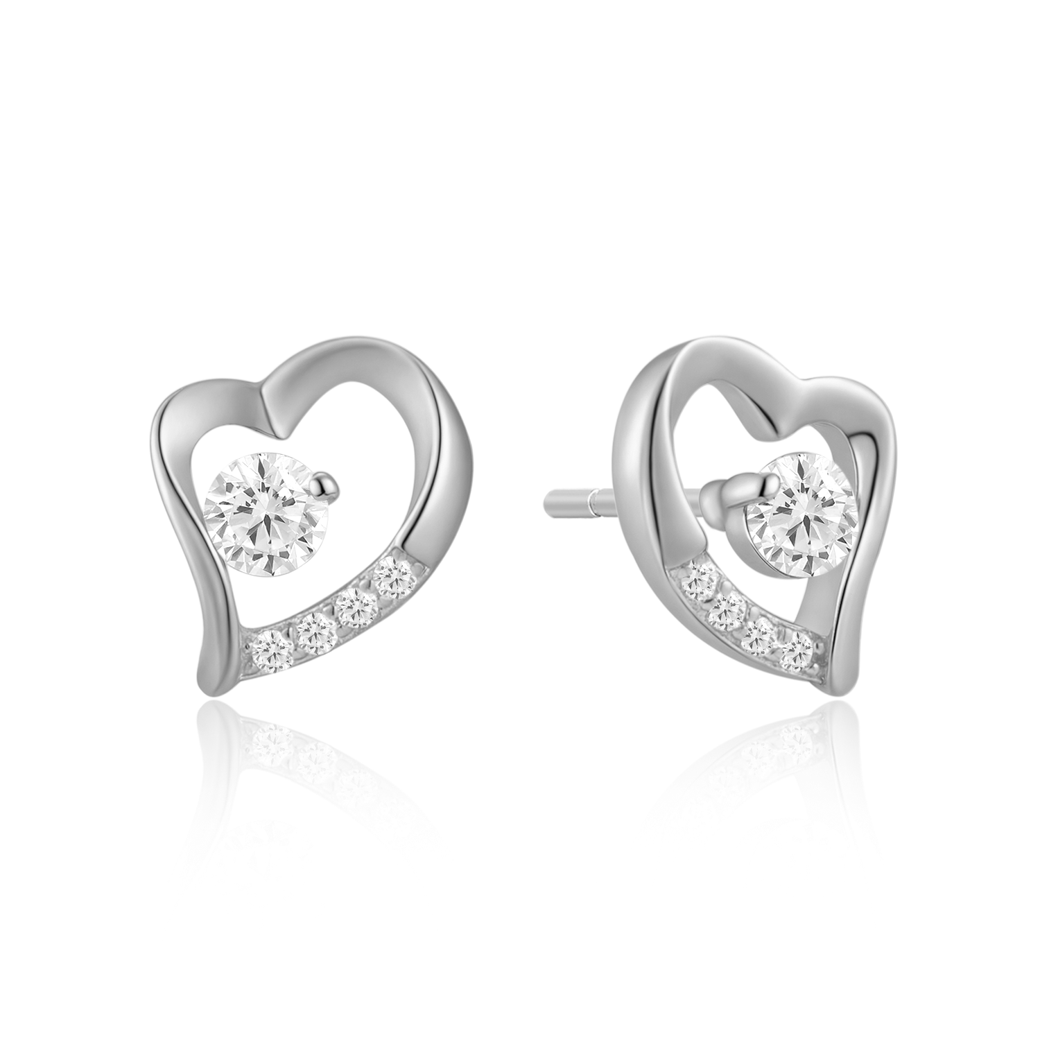Sølv ørestikker rhodineret skæv hjerte med syntetiske cubic zirconia
