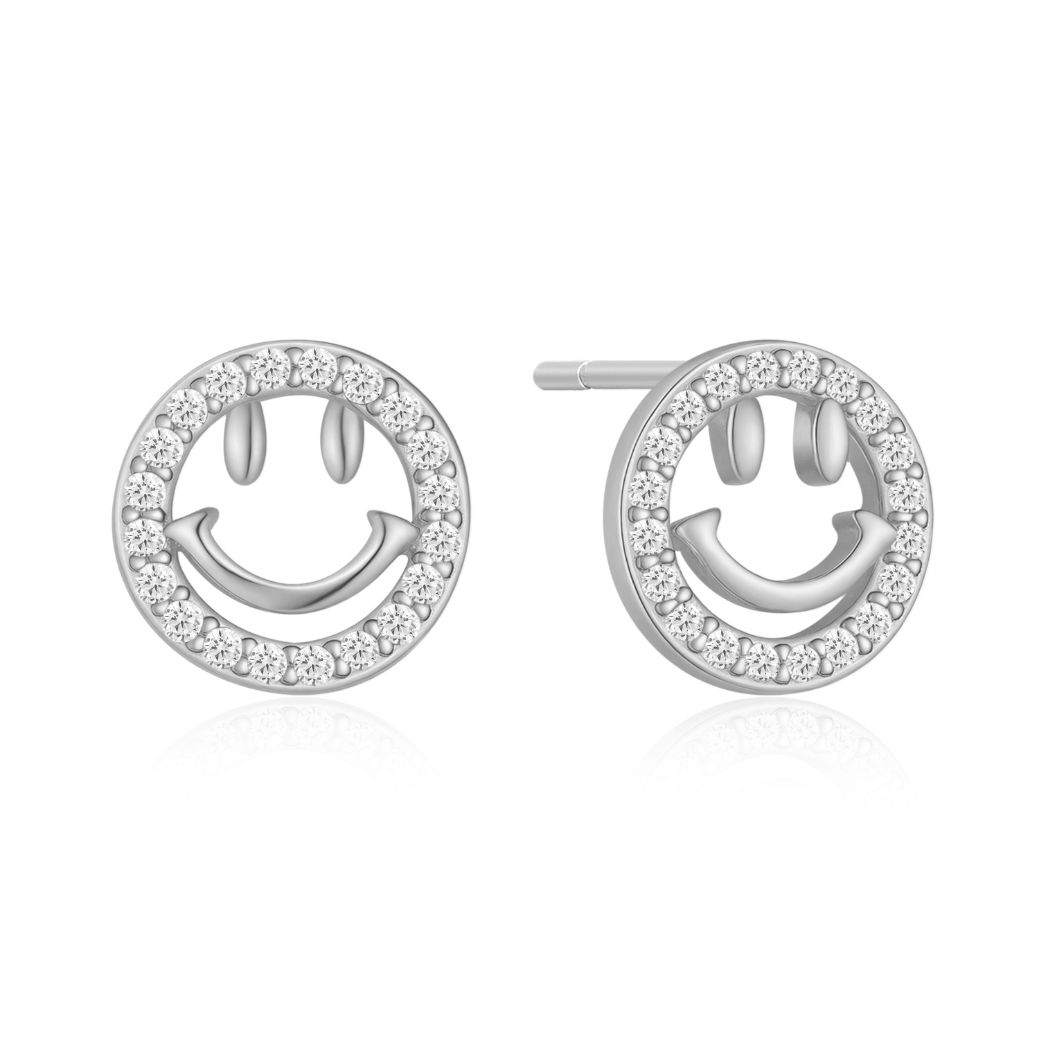 Sølv ørestikker rhodineret cirkel med smiley og syntetiske cubic zirconia