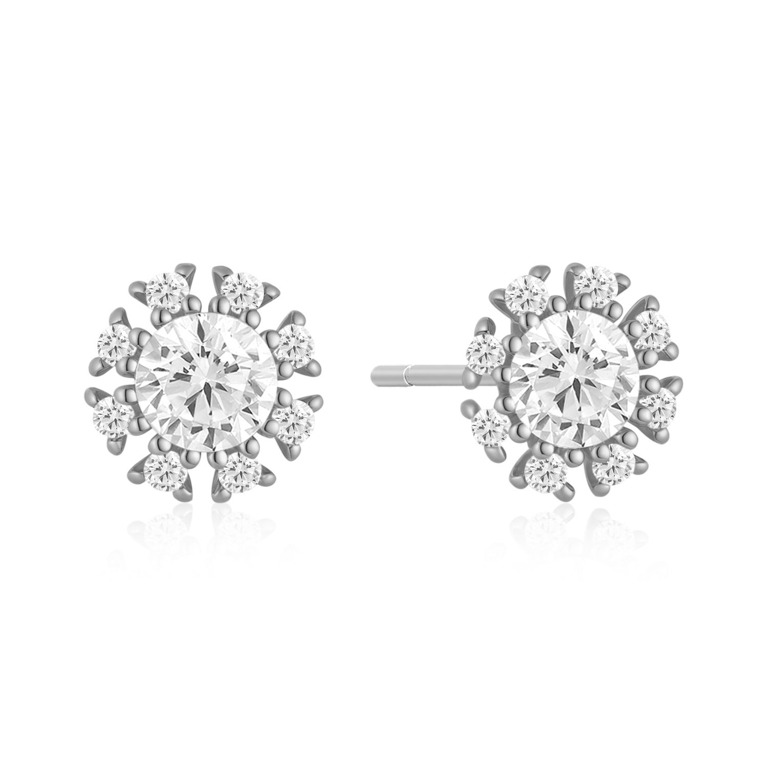 Sølv ørestikker rhodineret blomst med syntetiske cubic zirconia