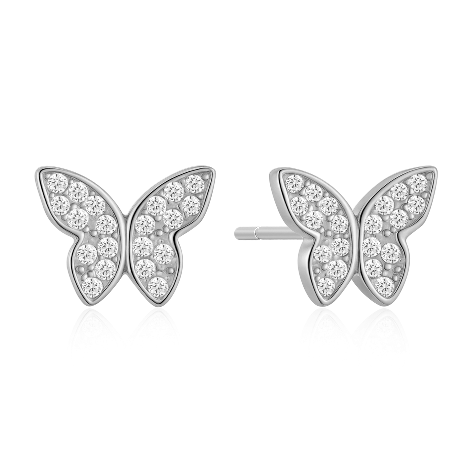 Sølv ørestikker rhodineret sommerfugl med syntetiske cubic zirconia.