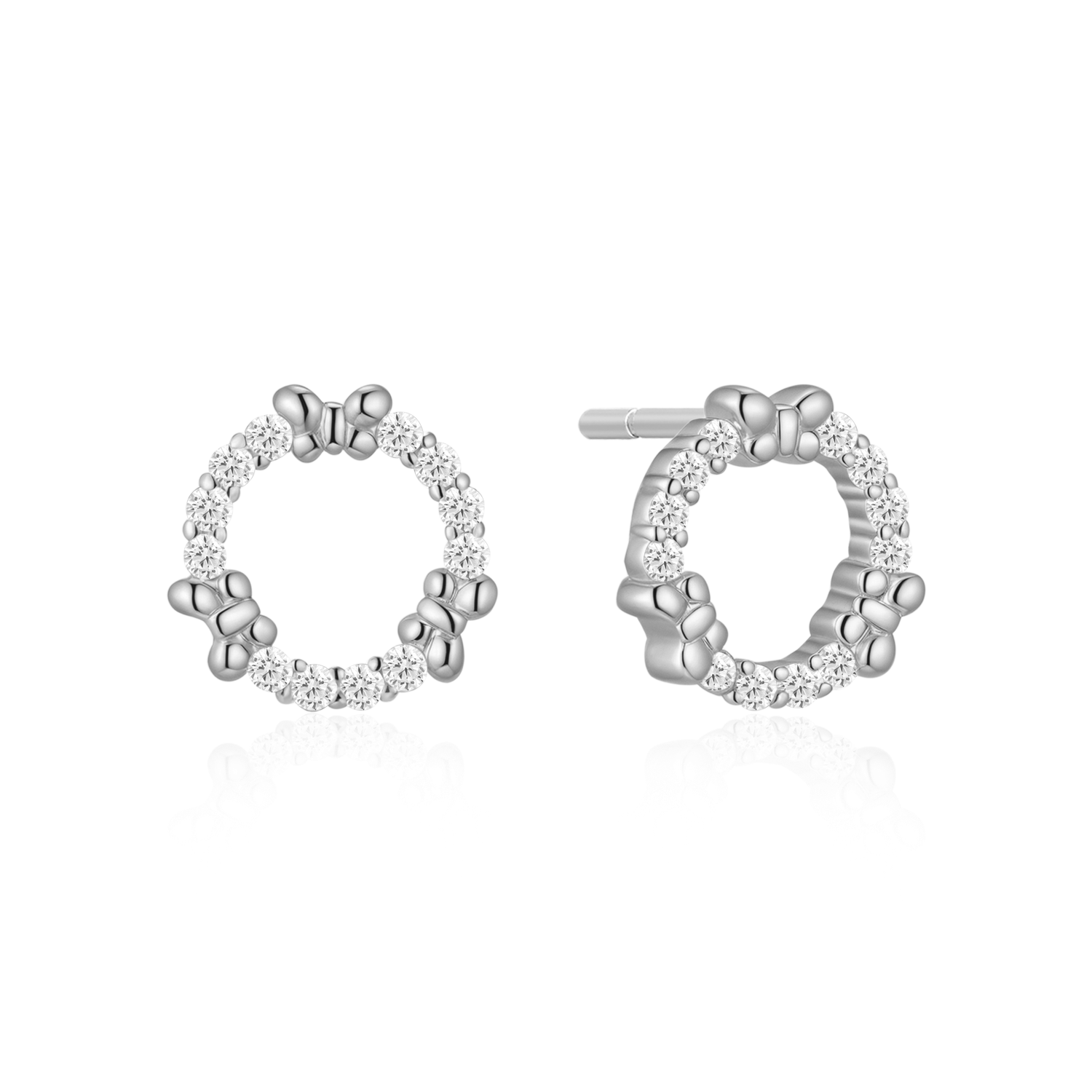 Sølv ørestikker rhodineret cirkel med sommerfugle og syntetiske cubic zirconia.