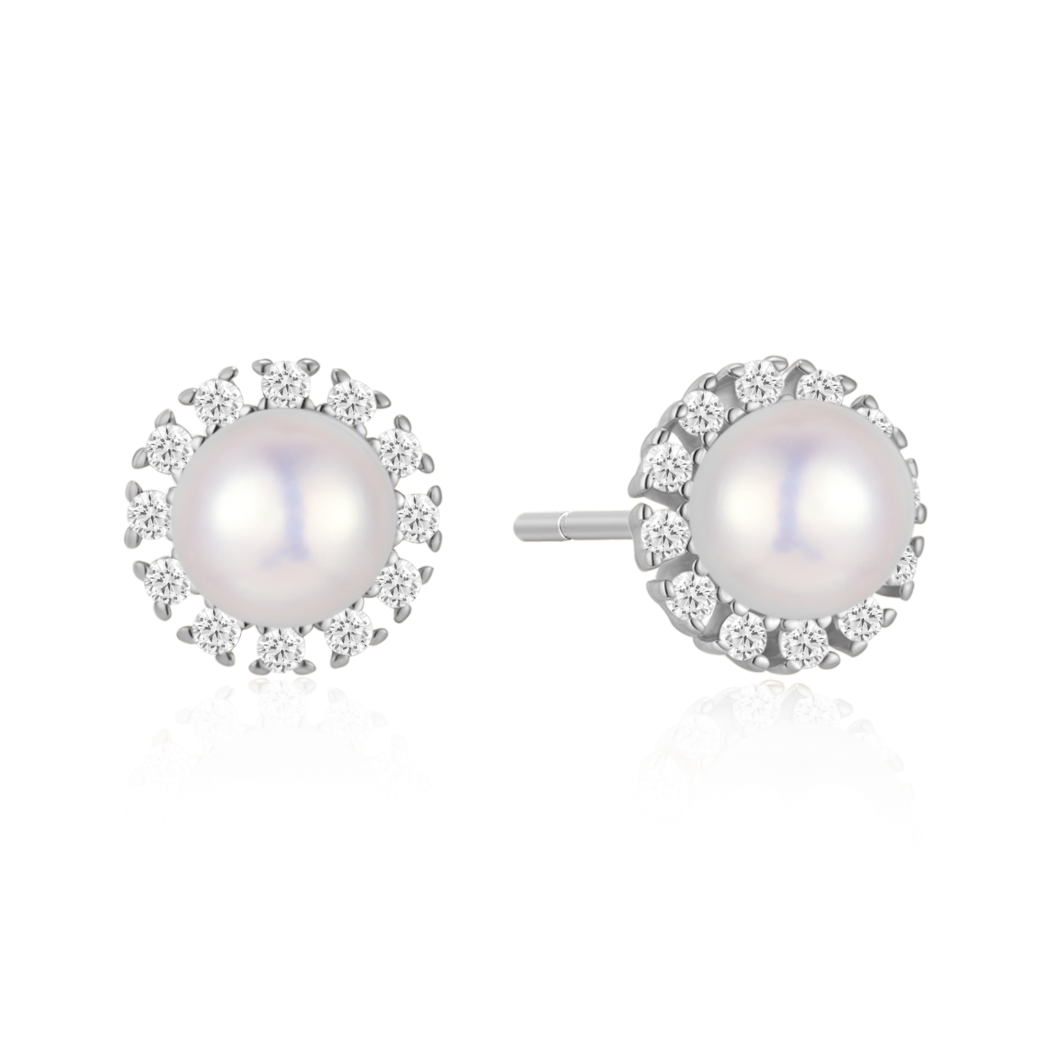 Sølv ørestikker rhodiner cirkel med en ferskvandsperle og syntetiske cubic zirconia.