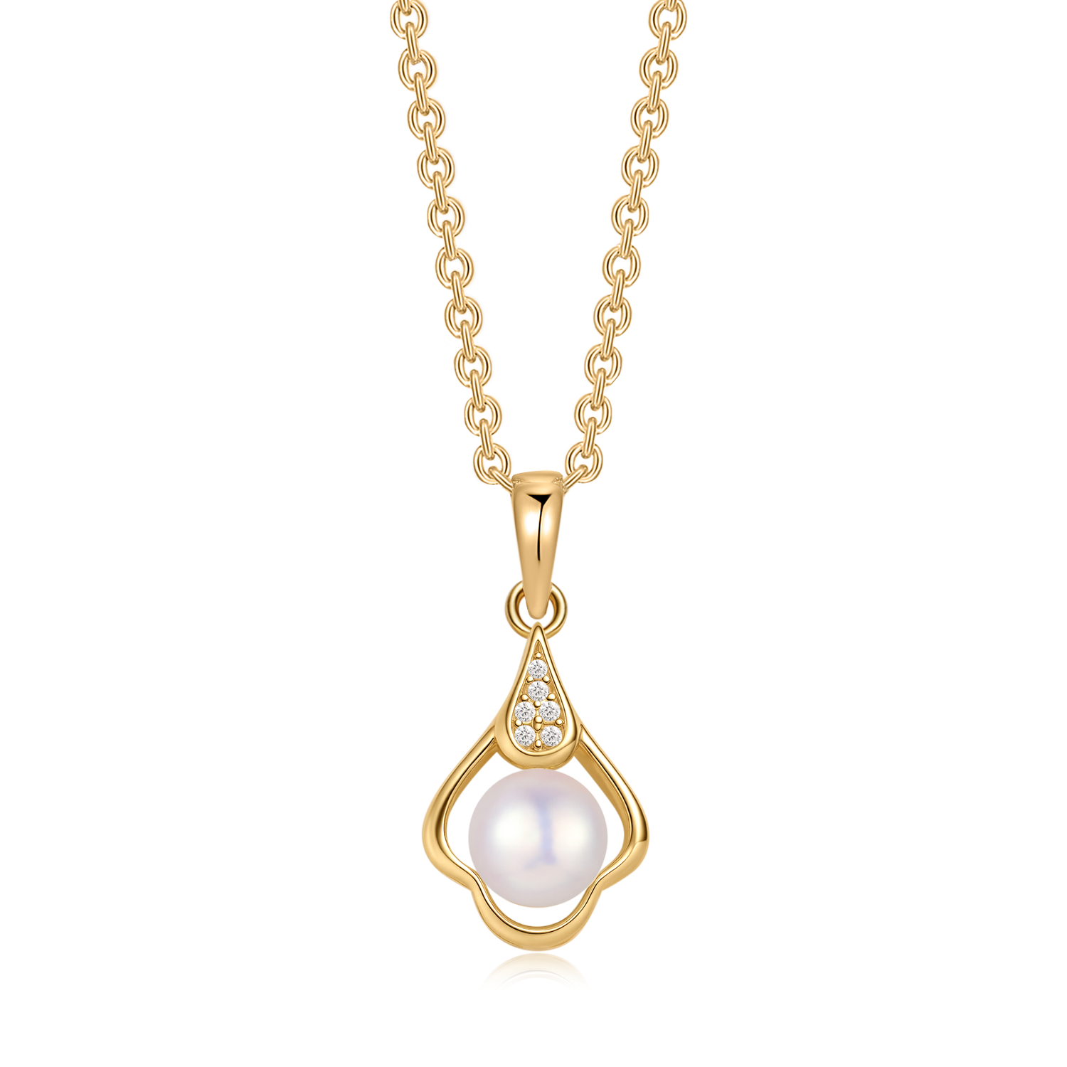 Sølvforgyldt halskæde skæv oval med syntetisk cubic zirconia og ferskvandsperle.