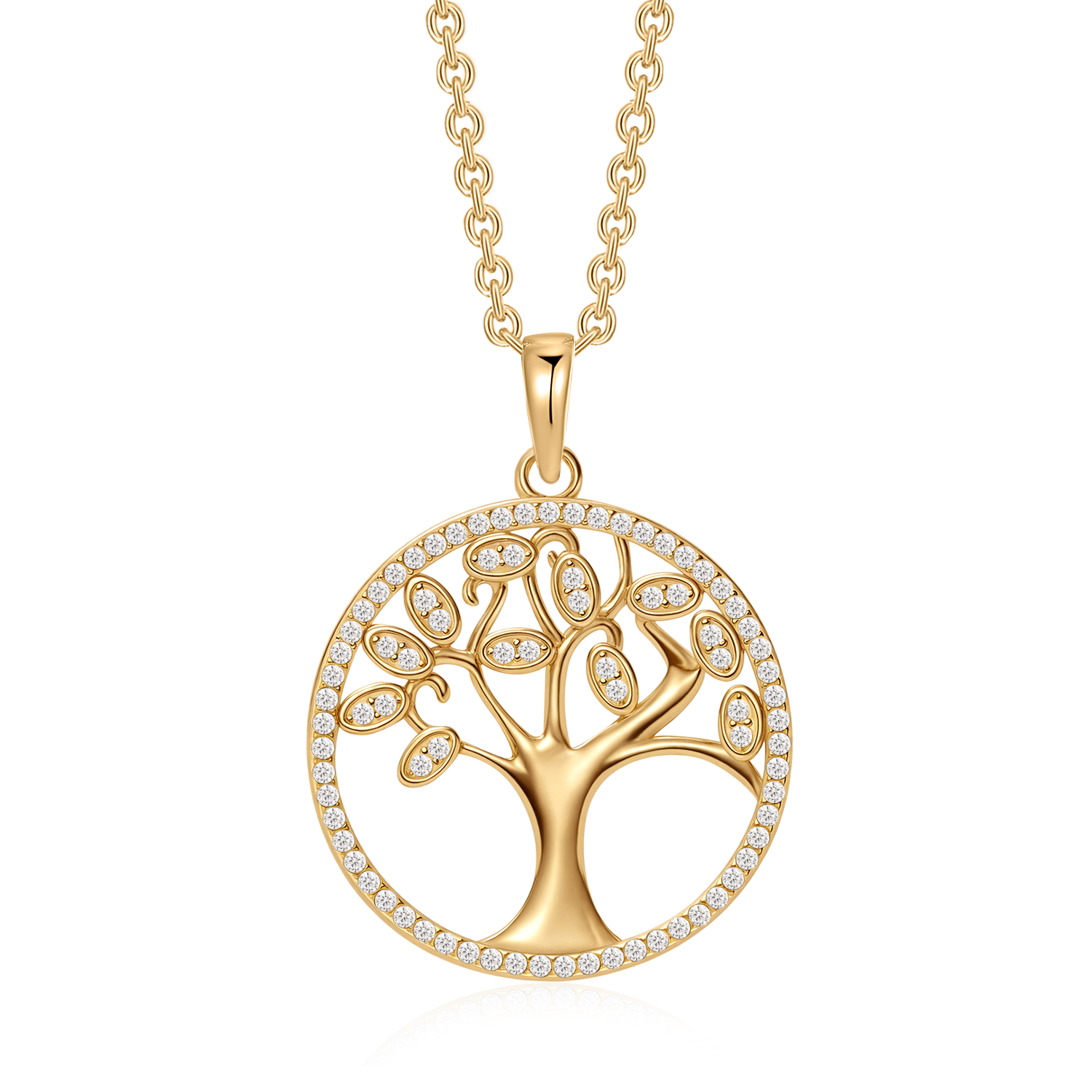 Sølvforgyldt halskæde livets træ med syntetiske cubic zirconia.