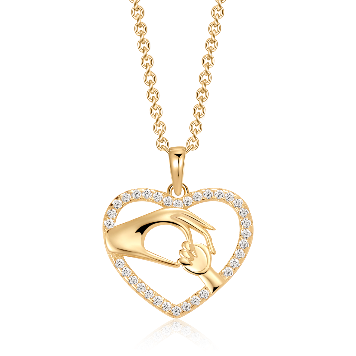 Sølvforgyldt halskæde hjerter med hænder af mor og barn med syntetiske cubic zirconia. "Mor og barn"