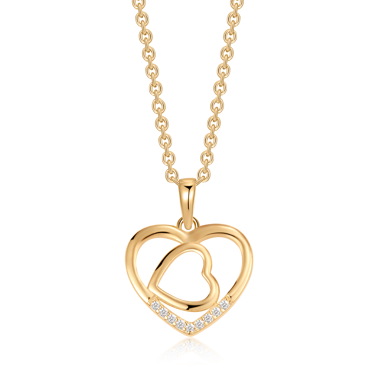Sølvforgyldt halskæde dobbelt hjerte med syntetiske cubic zirconia.