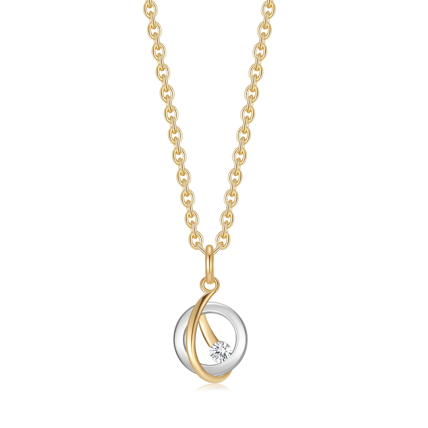 Sølvforgyldt halskæde rhodineret cirkel med forgyldt streg og en syntetisk c ubic zirconia.