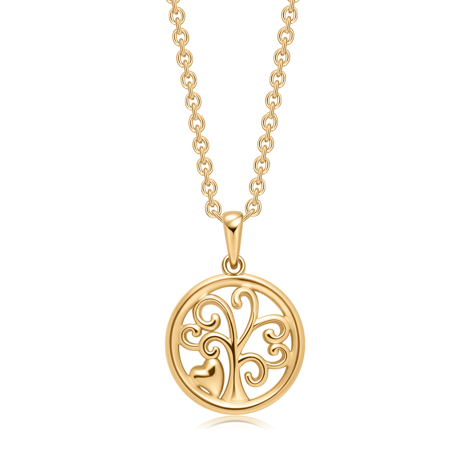 Sølvforgyldt halskæde cirkel med livets træ og hjerte.