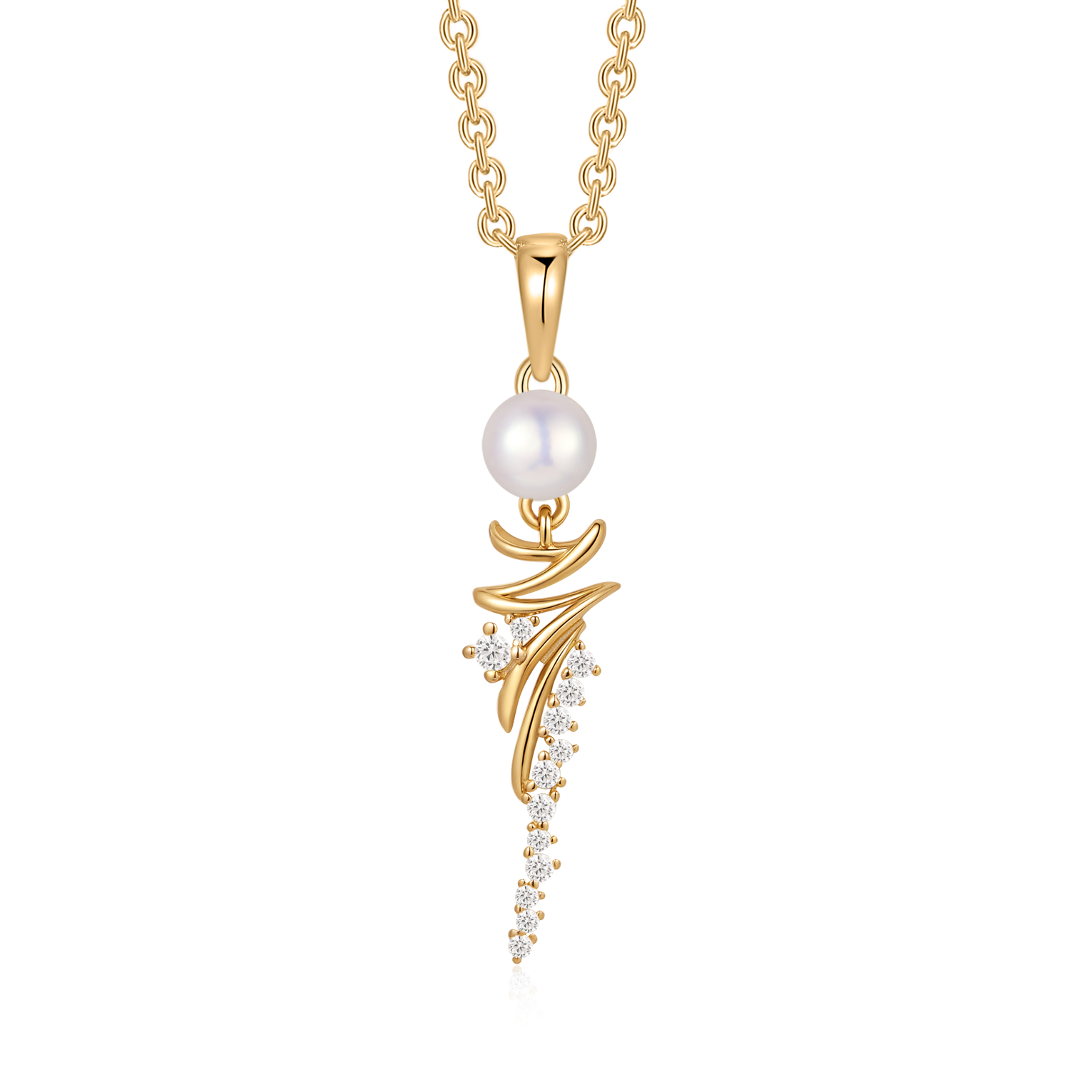 Sølvforgyldt halskæde ferskvandsperle med afalng zigzag og syntetiske cubic zirconia.