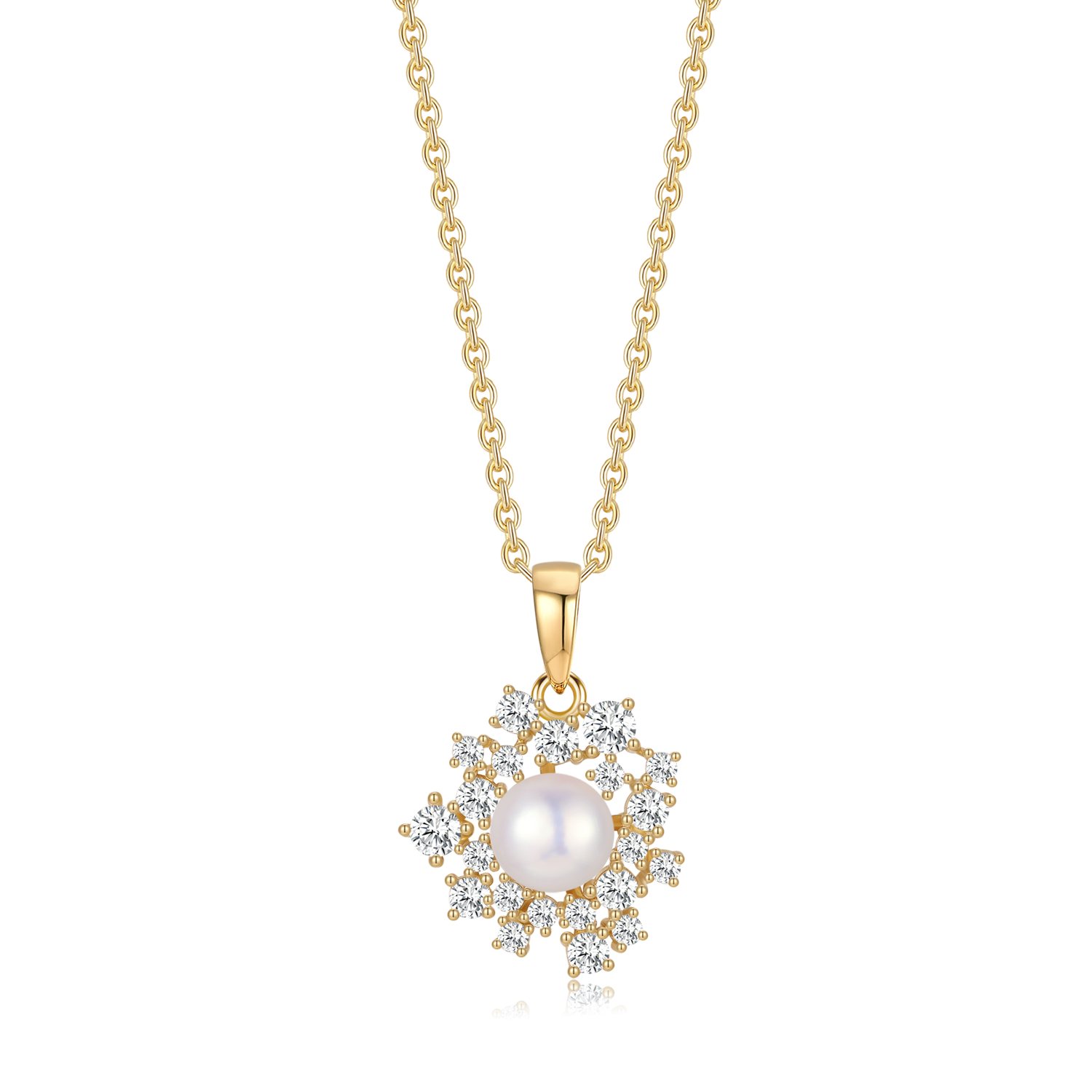 Sølvforgyldt halskæde blomst med en ferskvandsperle og syntetiske cubic zirconia.