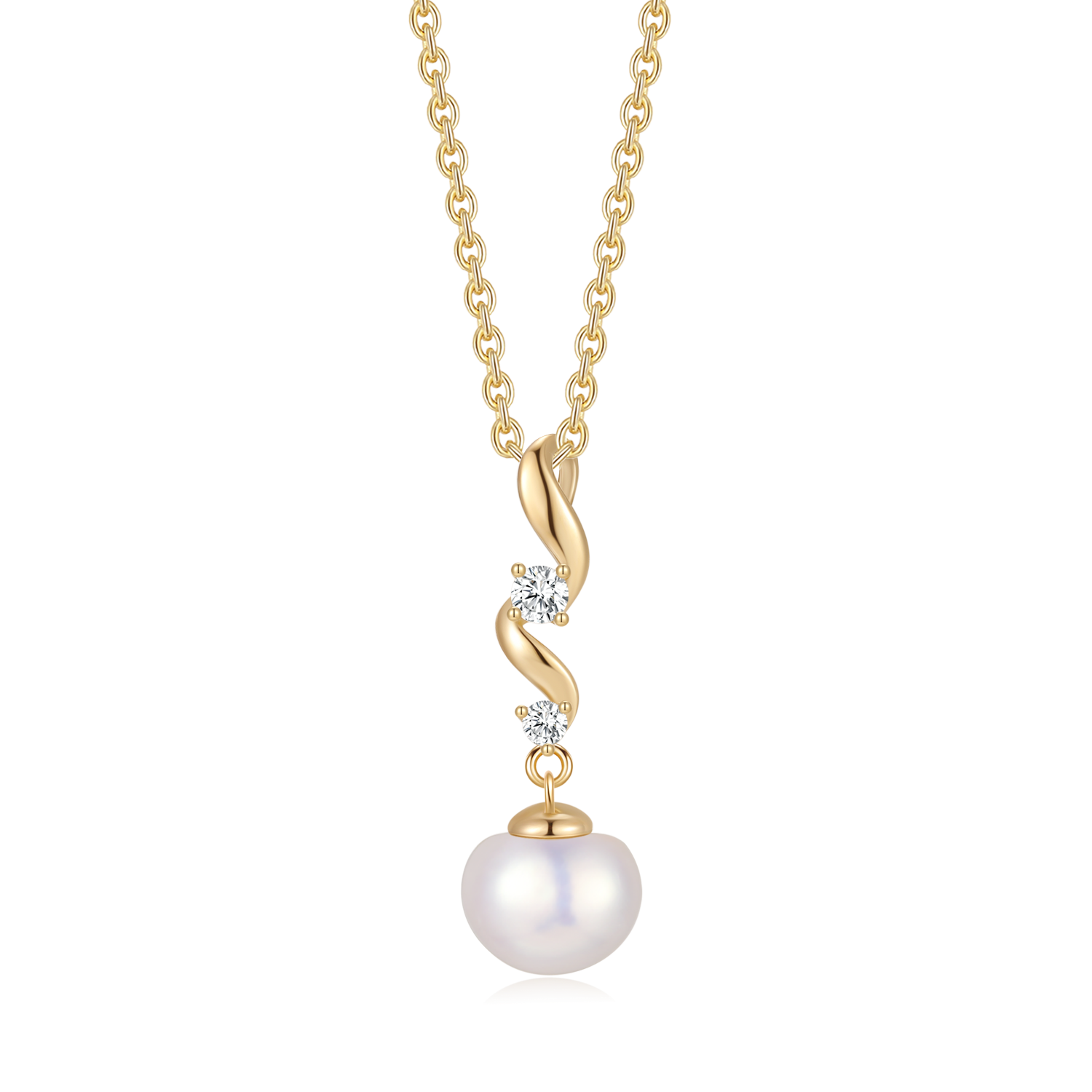 Sølvforgyldt halskæde snoget med syntetiske cubic zirconia og en ferskvandsperle.
