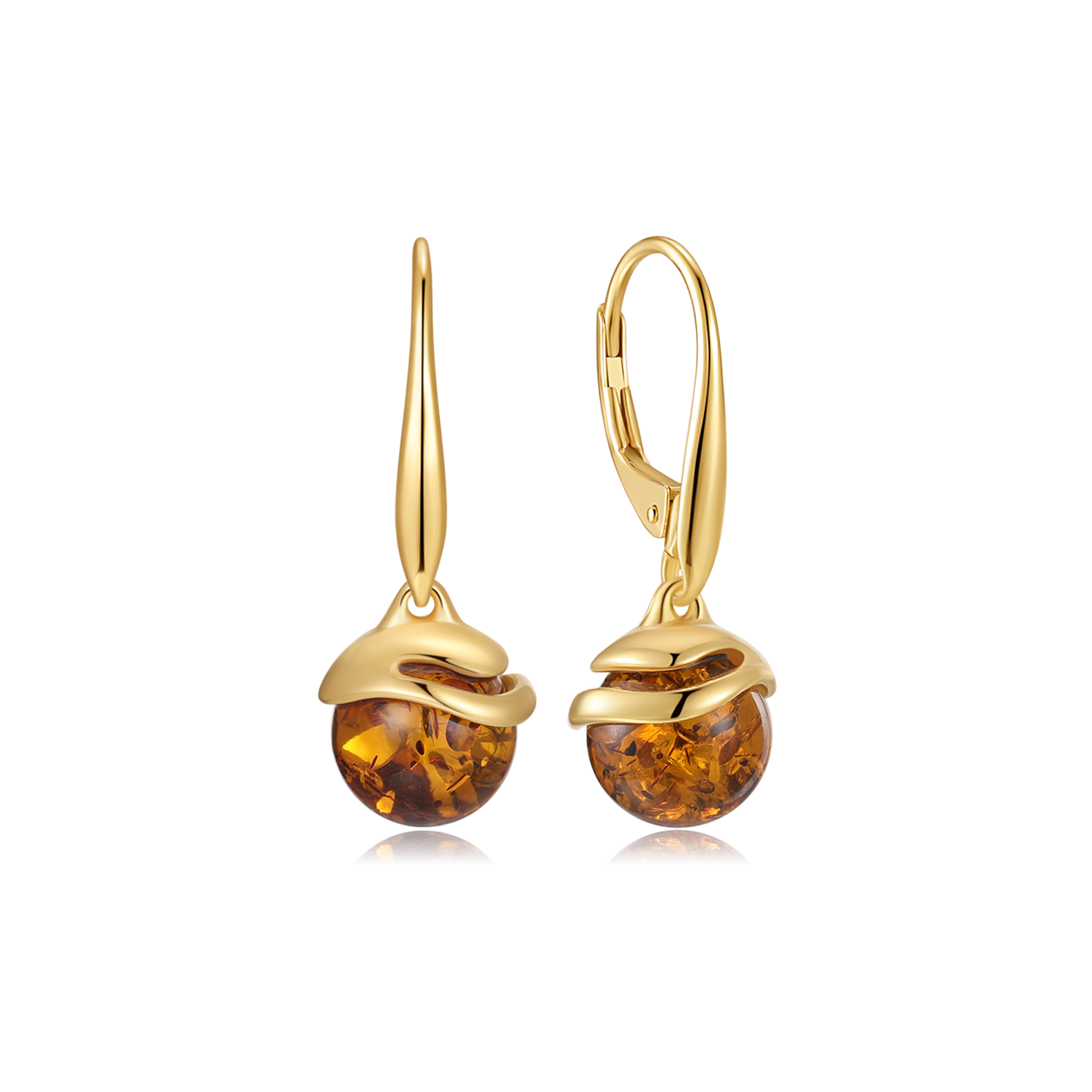 Sølvforgyldt ørehængere rund kugle i rav.
