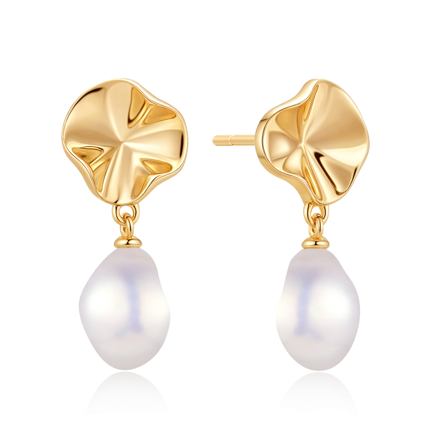 Sølvforgyldt ørehænger plade med forskellige størrelse ferskvandsperle.